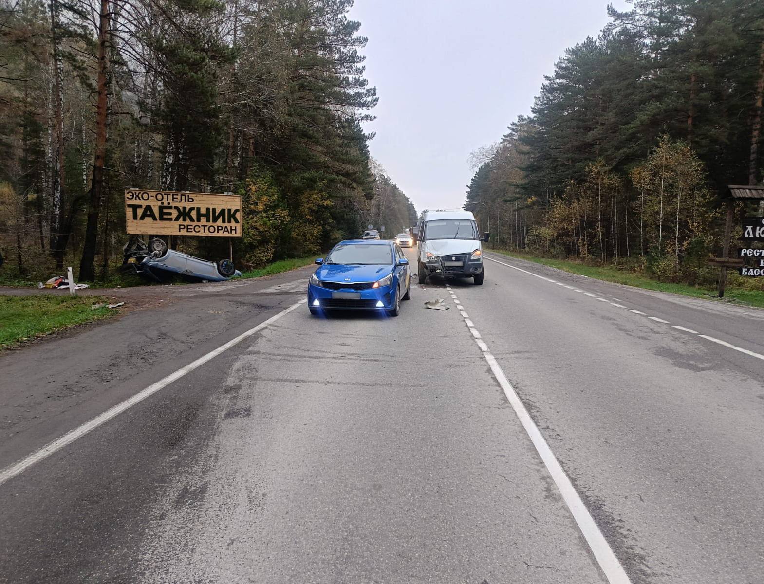 Установлено, что 40-летний житель Горно-Алтайска, управляя автомобилем ГАЗ Соболь, не выбрал безопасную дистанцию до движущегося впереди транспортного средства и допустил столкновение с автомобилем Ford Focus, за рулем которого находился 41-летний житель Усть-Коксинского района. От удара легковушка съехала с дороги и опрокинулась в кювет, а ГАЗ Соболь допустил столкновение с автомобилем Kia Rio, который также двигался впереди в попутном направлении. В результате ДТП на месте бригадой скорой медицинской помощи был осмотрен 64-летний пассажир микроавтобуса, получивший ушиб ноги, госпитализация ему не потребовалась.