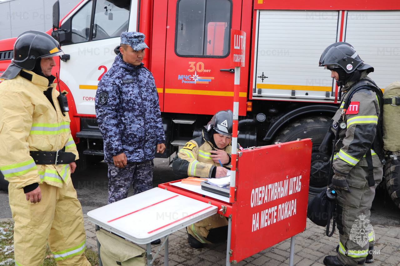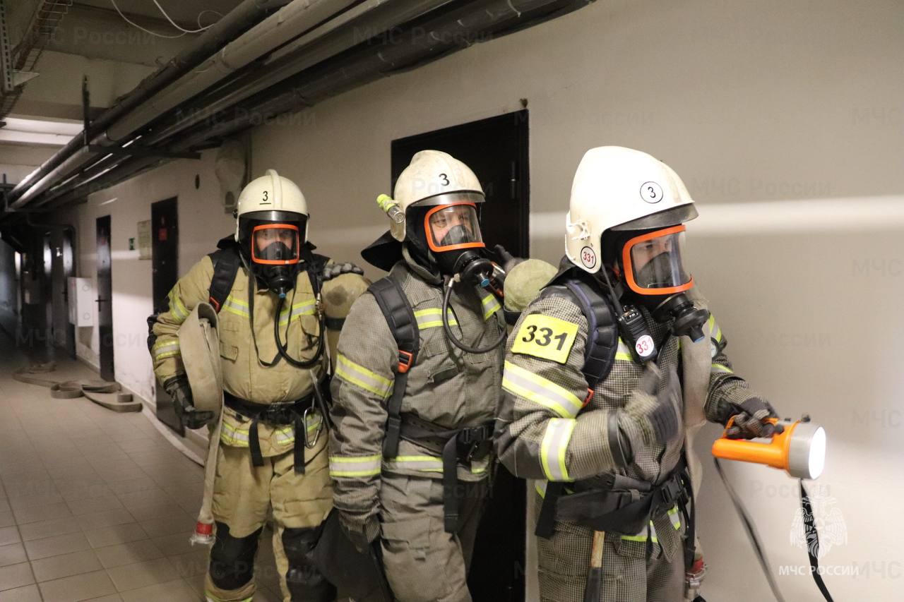 Согласно сценарию, в подвале административного здания произошло возгорание из-за короткого замыкания. Огонь быстро распространялся, а густой дым усложнял эвакуацию людей.