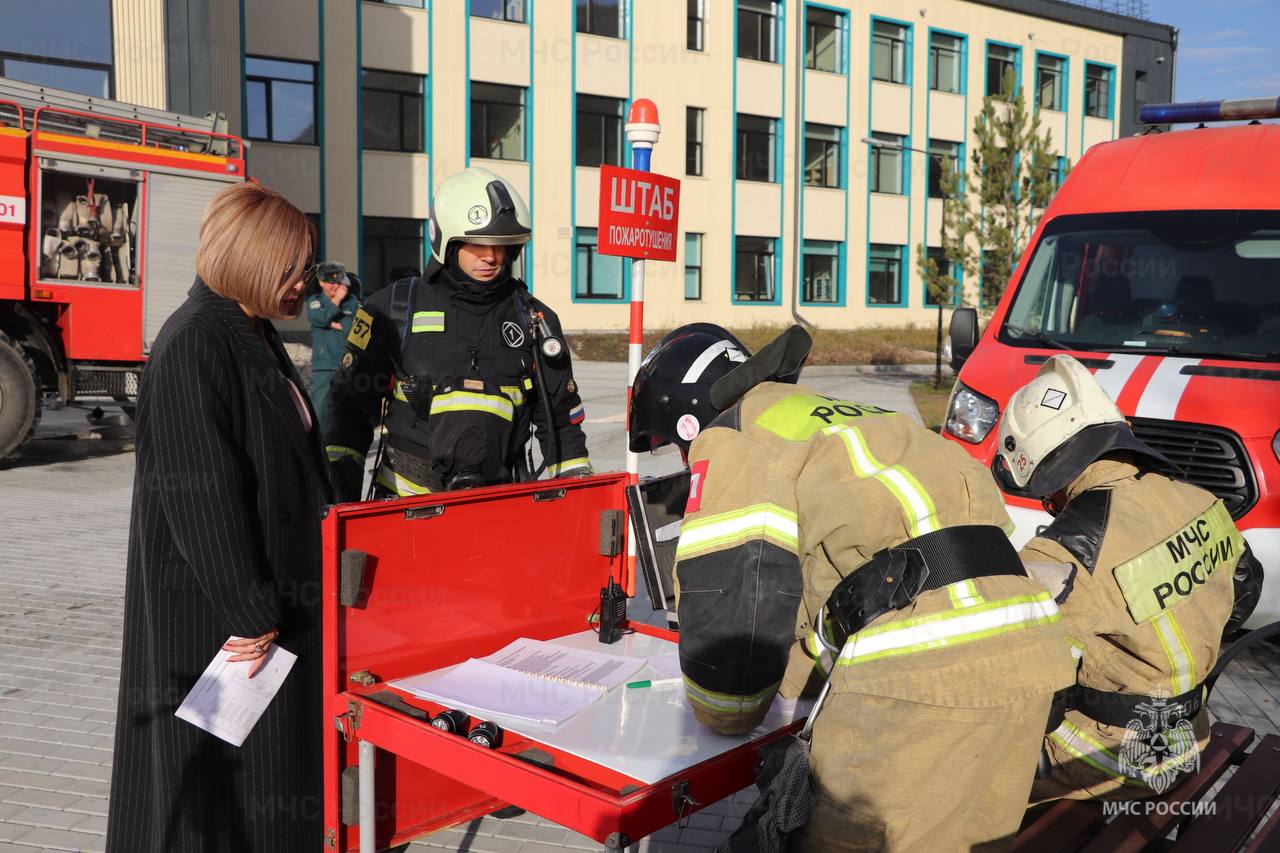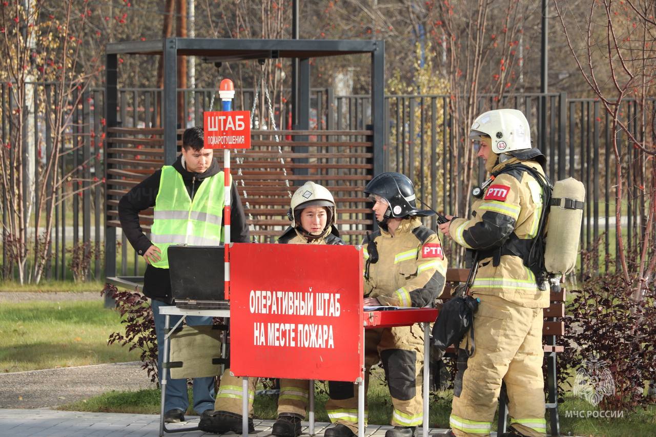 Прибывшие подразделения провели разведку и эвакуировали трех условных пострадавших с использованием спасательного оборудования. Благодаря слаженной работе, условный пожар был ликвидирован в кратчайшие сроки.