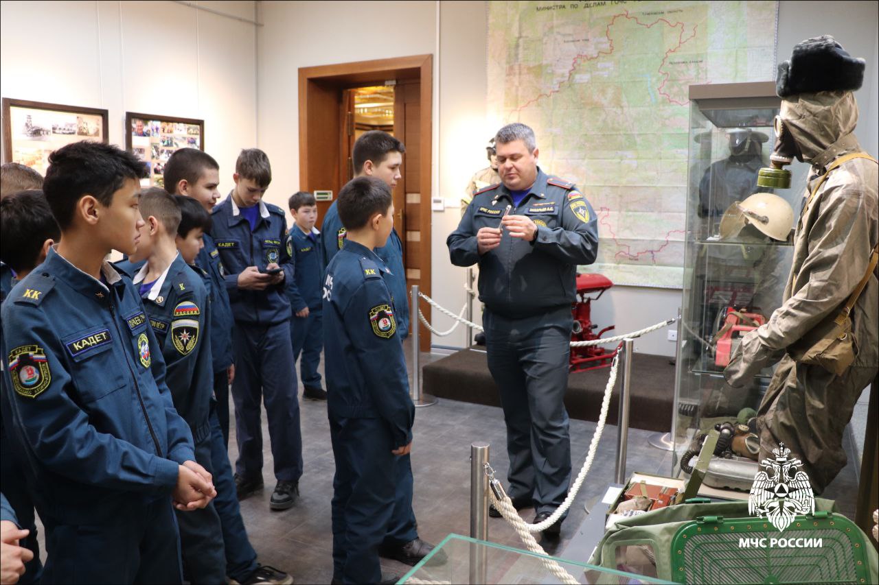 Сотрудники ведомства провели увлекательную экскурсию, рассказав будущим спасателям о работе службы и её истории. На экспозиции представлены уникальные экспонаты: редкие фотографии, образцы боевой и парадной формы сотрудников МЧС разных лет.