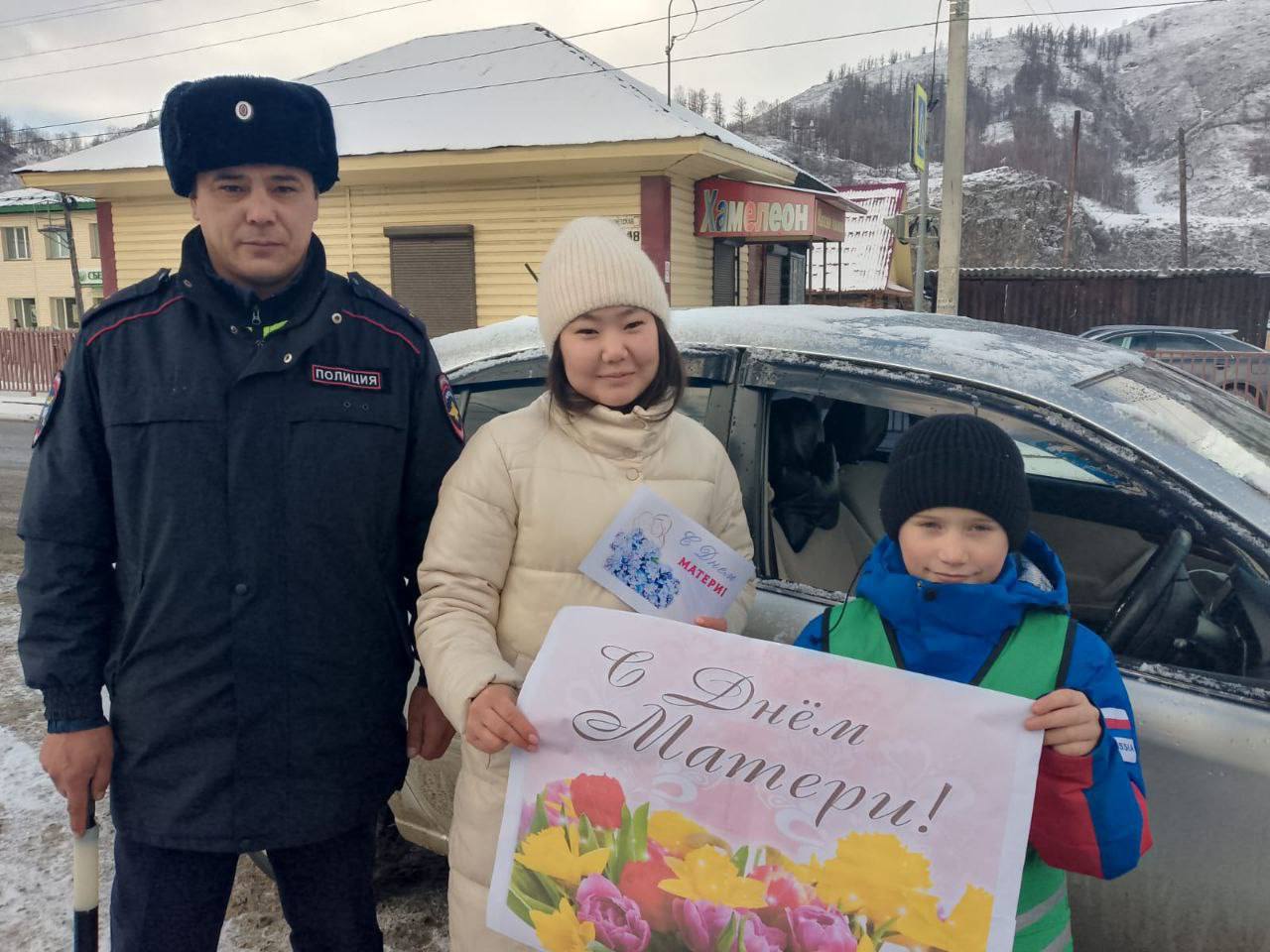В с. Шебалино сотрудники Госавтоинспекции совместно с отрядом ЮИД провели акцию, посвященную Дню матери