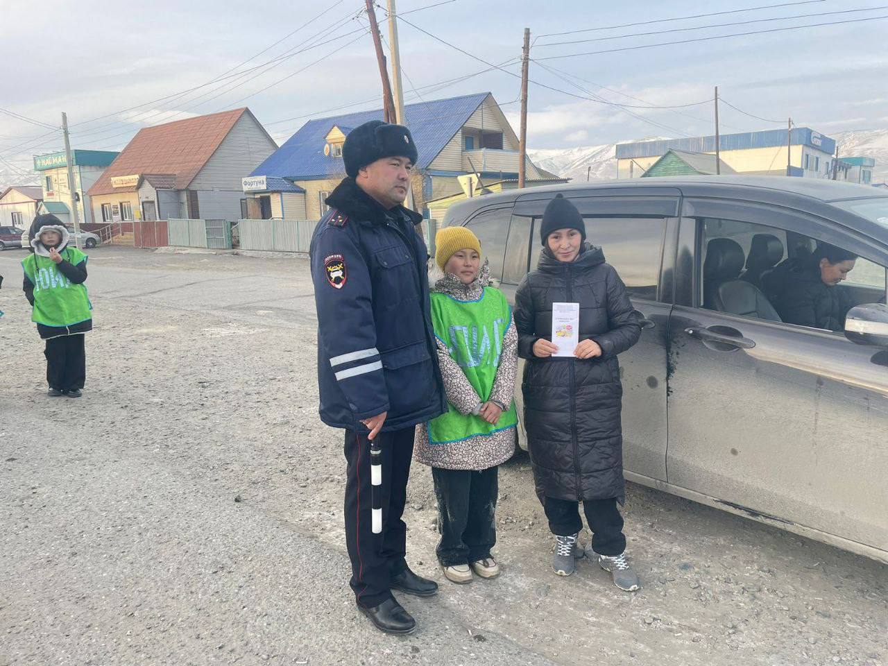 Сотрудники Госавтоинспекции Кош-Агачского района совместно с отрядом ЮИД поздравили женщин с Днём матери