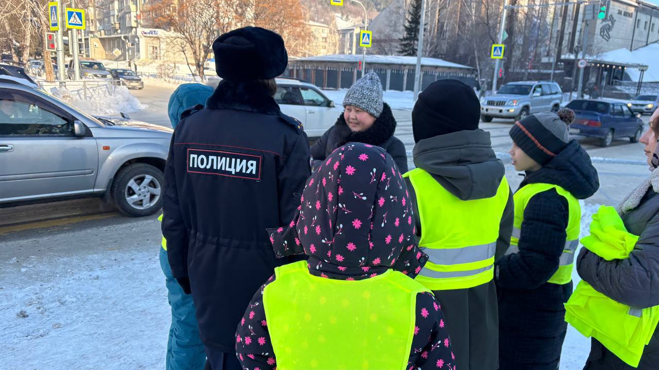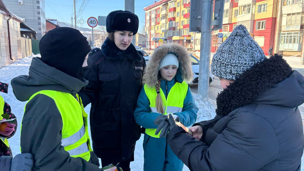 Накануне праздников сотрудники Госавтоинспекции вместе с юными инспекторами движения (ЮИД) Гимназии № 9 г. Горно-Алтайска вышли на оживленный пешеходный переход республиканской столицы для того, чтобы поздравить пешеходов с наступающим Новым годом и напомнить о безопасности на дорогах.