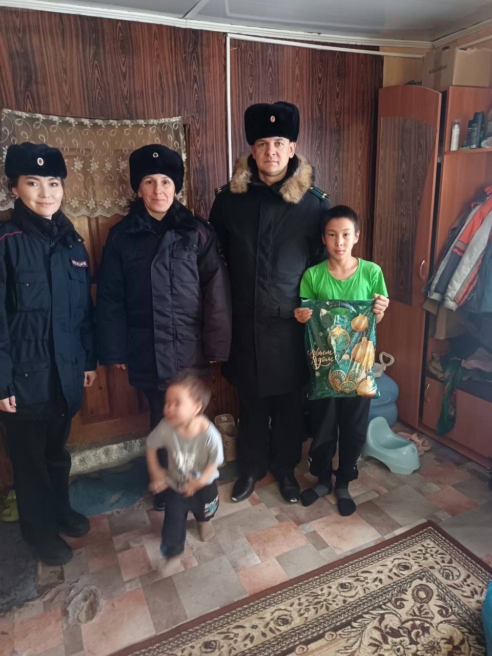 В рамках акции «Полицейский Дед Мороз» полицейские Усть-Канского, Усть-Коксинского, Кош-Агачского районов поздравили с Новым годом детей из многодетных и малообеспеченных семей