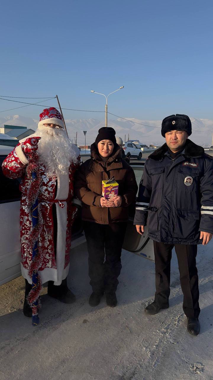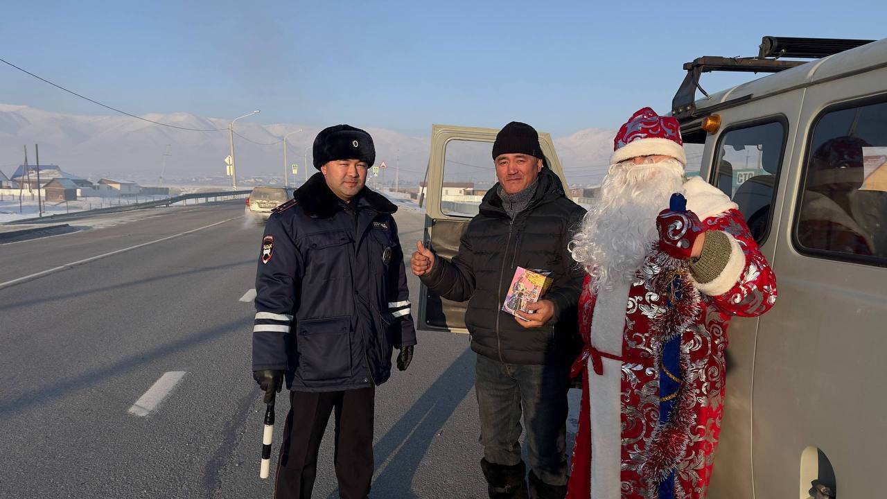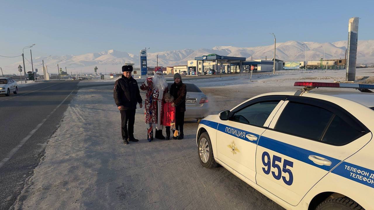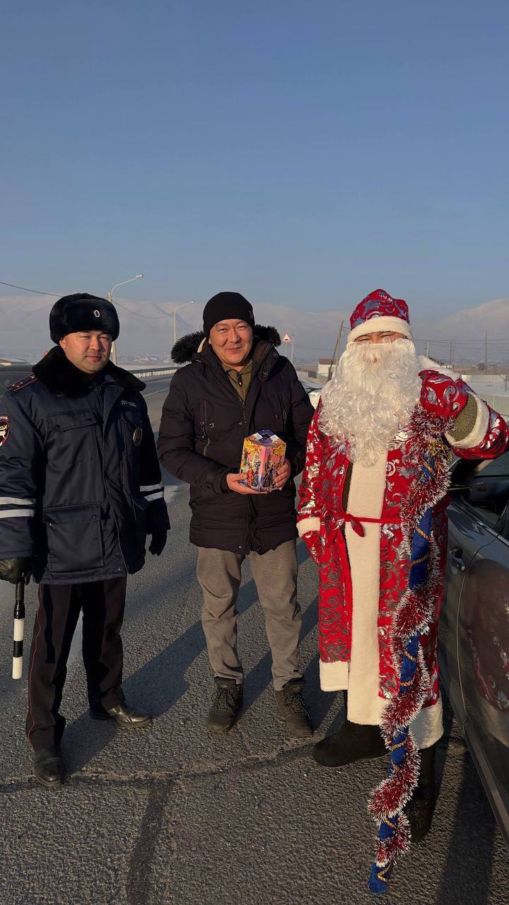 Накануне Нового года сотрудники Госавтоинспекции Кош-Агачского района провели необычную предпраздничную акцию. Вместо проверок они поздравляли водителей с наступающими праздниками.