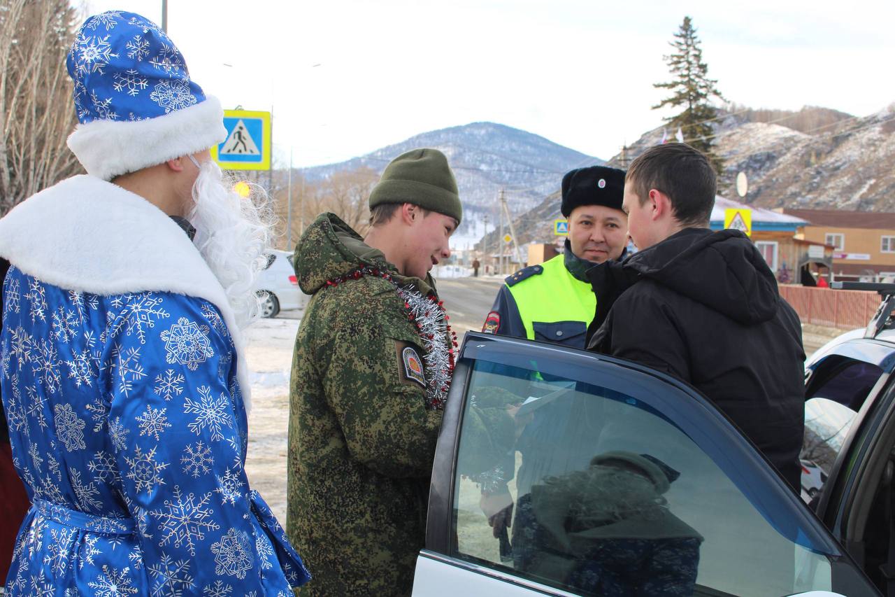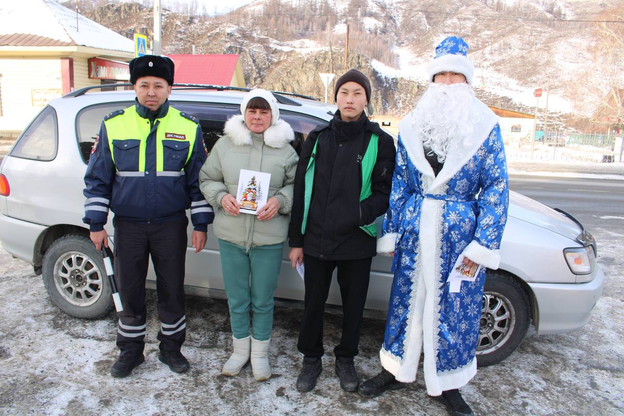 Дед Мороз на страже дорог Шебалинского района: праздничный патруль ГИБДД и юных помощников поздравил водителей