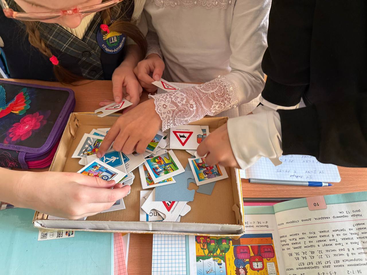 Занятие прошло в увлекательном игровом формате. Ребята разгадывали тематические ребусы на знание дорожных знаков и ситуаций, а также совместно играли в специальную настольную игру по Правилам дорожного движения. В процессе игры школьники в доступной форме повторили правила для пешеходов, обсудили безопасные маршруты и важность внимательности на дороге. Особое внимание уделили актуальным для любого сезона темам: использованию световозвращающих элементов в темноте, правилам перехода проезжей части и безопасности во дворах.