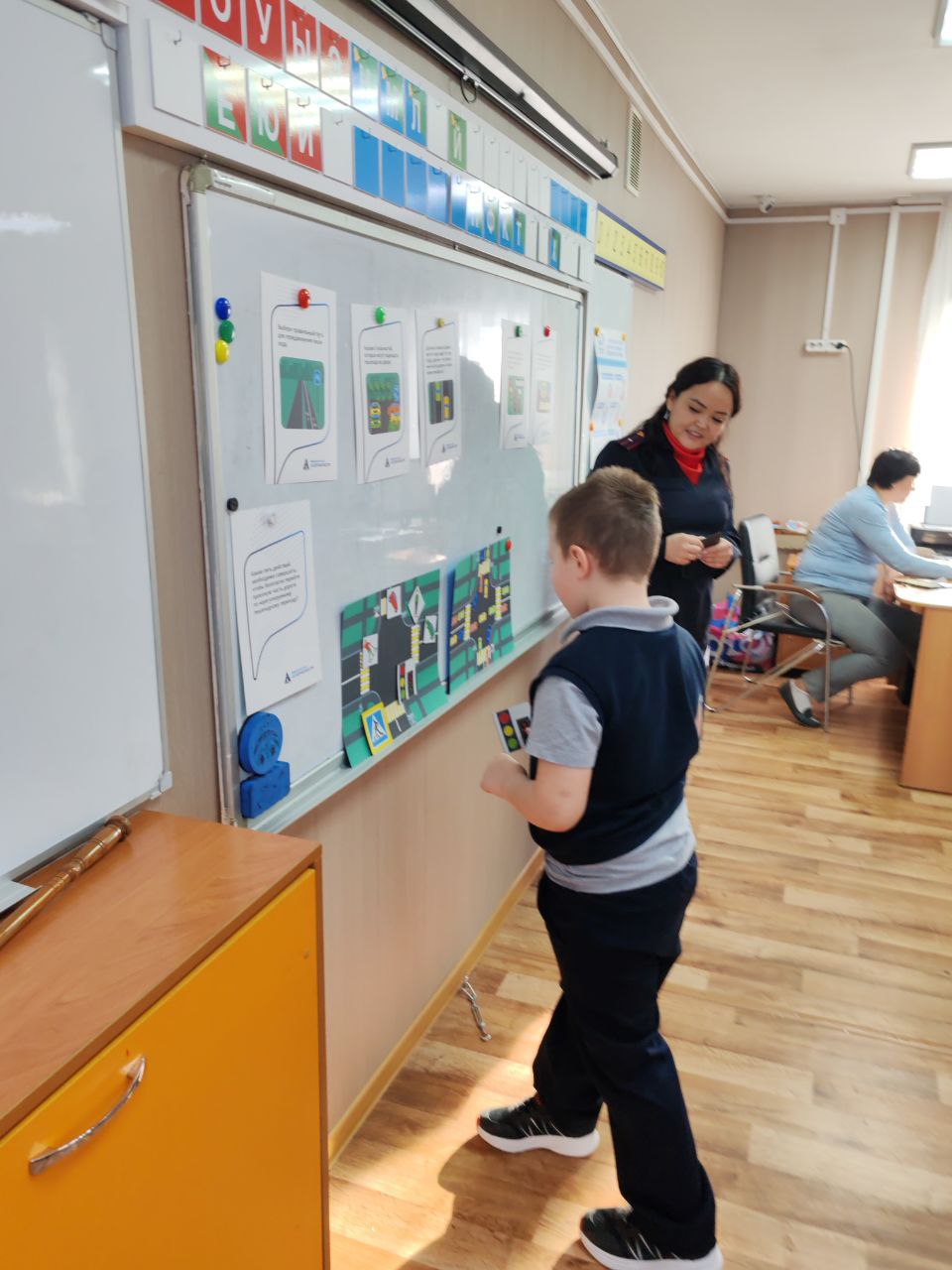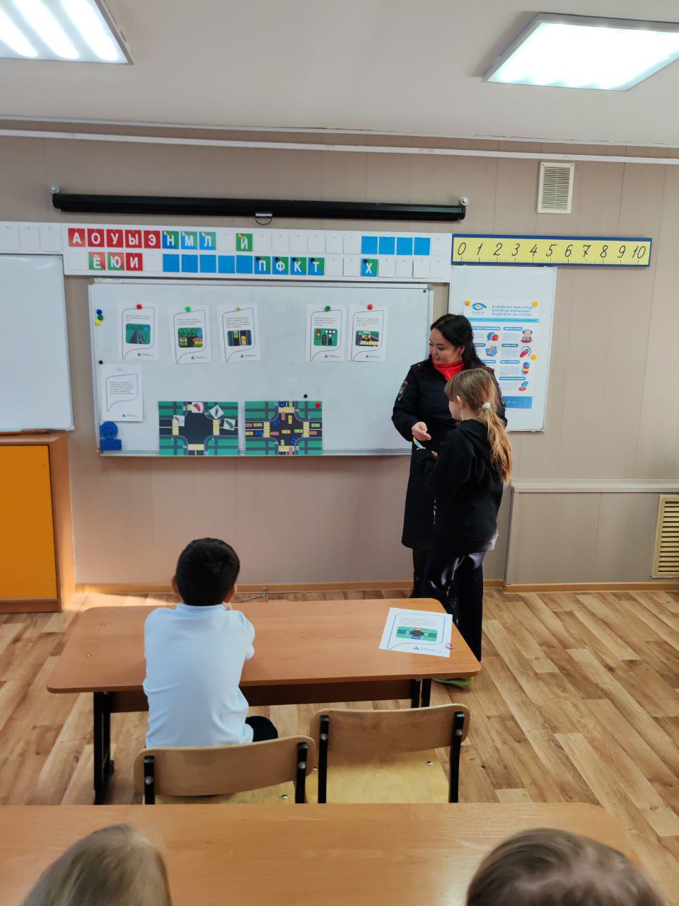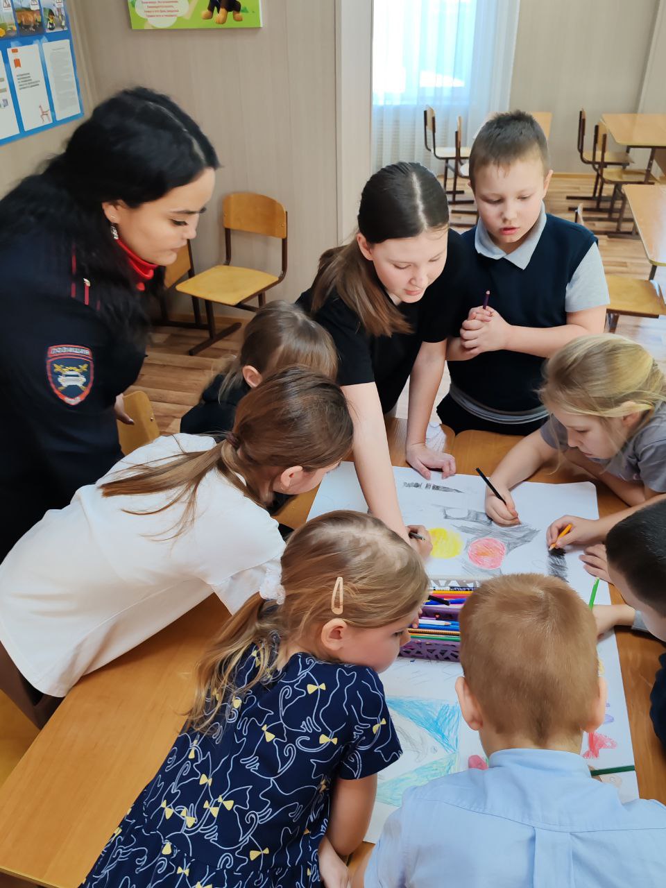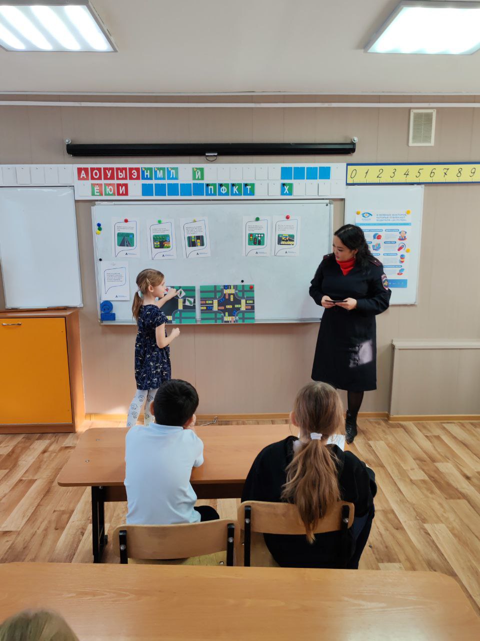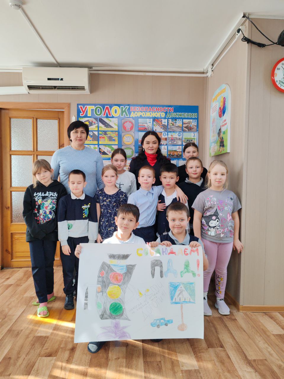 Теория — это хорошо, а практика — еще лучше! На смоделированном перекрестке в классе, ребята примеряли на себя роли пешеходов, водителей велосипедов и даже регулировщиков. Разбирали сложные ситуации, учились смотреть на дорогу глазами водителя. Но самым креативным этапом стало создание тематической стенгазеты! Дети придумывали слоганы, рисовали на ватмане самые важные дорожные знаки.