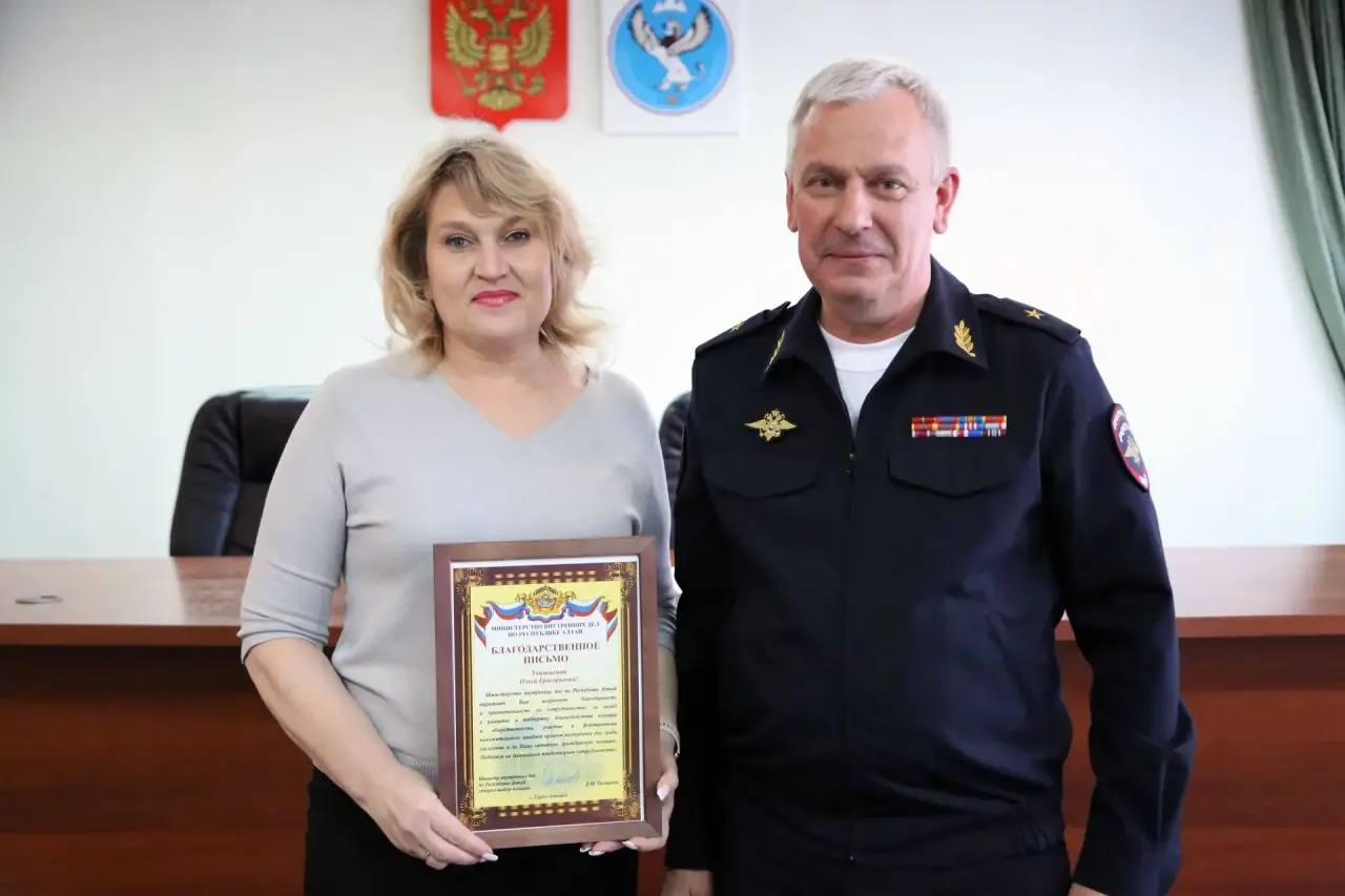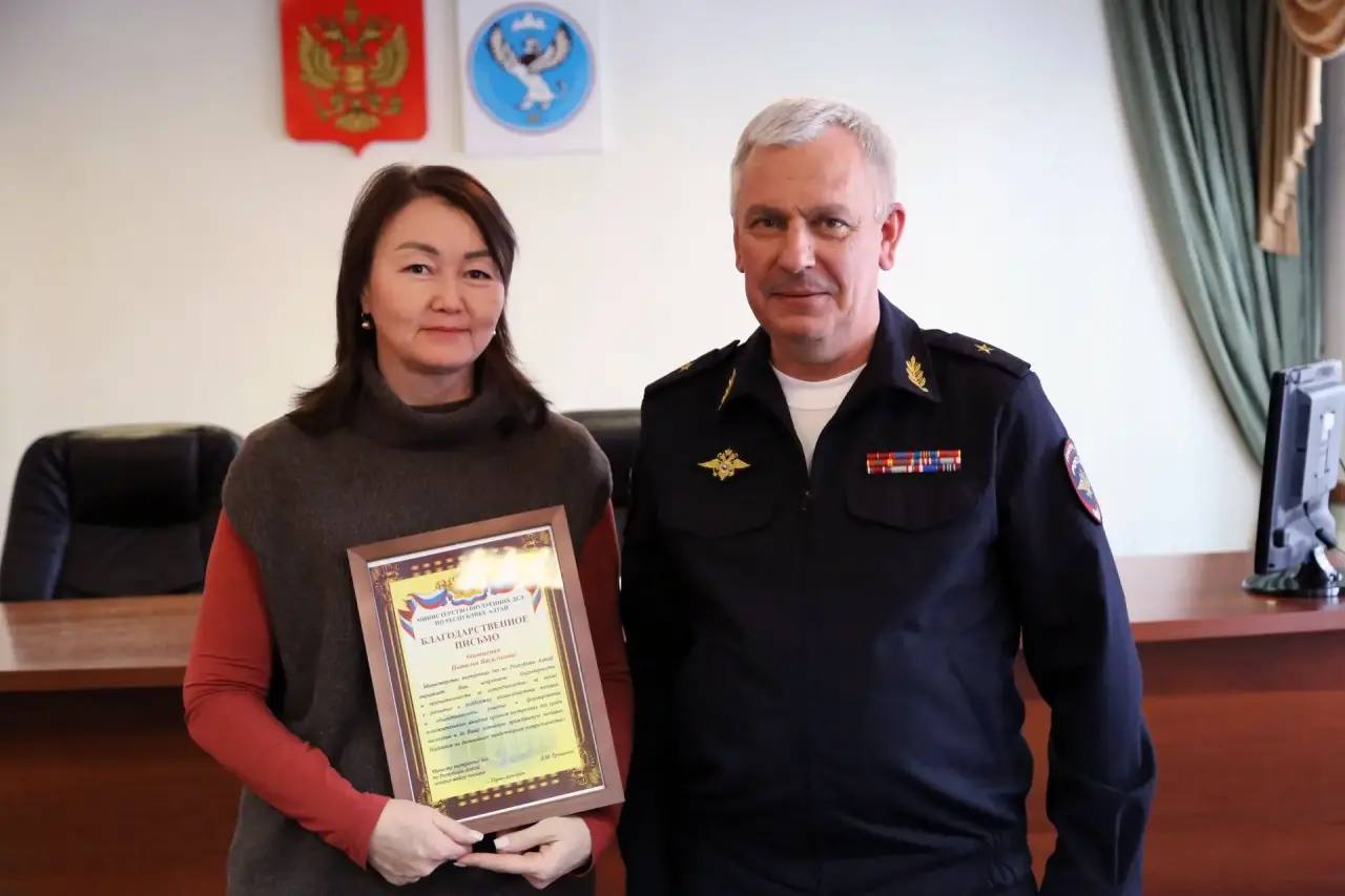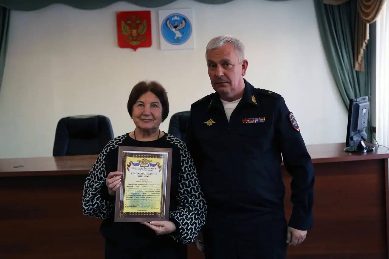 За вклад в развитие и поддержку взаимодействия полиции и общественности, участие в формировании положительного имиджа органов внутренних дел среди населения и активную гражданскую позицию благодарственным письмом МВД по Республике Алтай отмечены: Галина Мыртыновой, Роман Комаров, Владислав Поклонов, Наталия Манышева и Ольга Облецова.