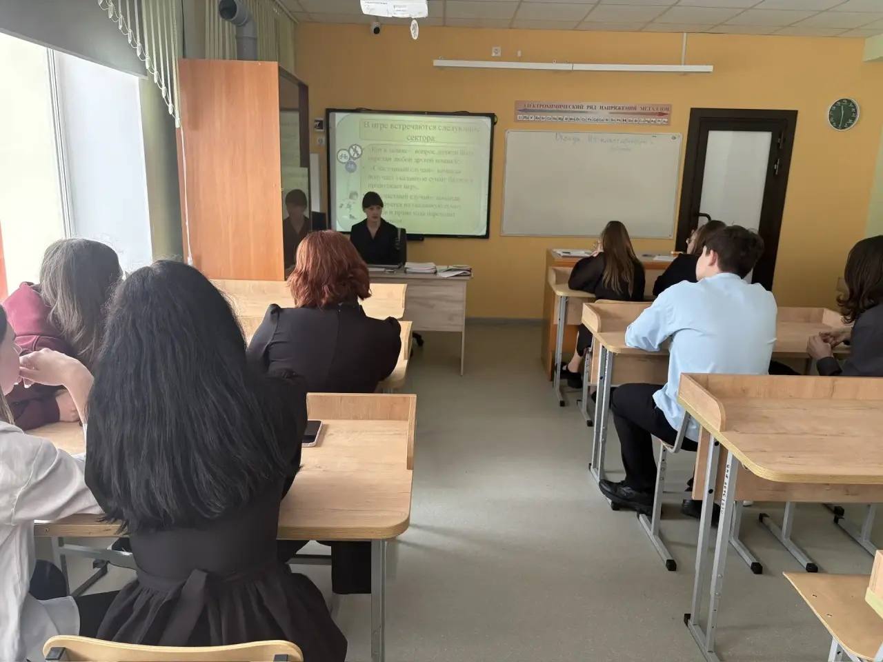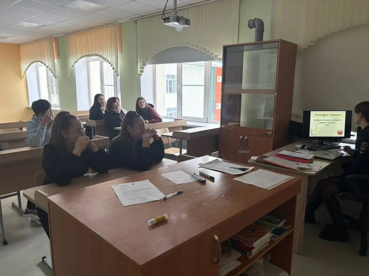 Для старшеклассников из 9 класса подход был более серьезным и правовым. С ними сотрудники ГИБДД провели интеллектуальную викторину по Правилам дорожного движения в популярном формате «Своя игра». Этот турнир потребовал от подростков не только отличного знания ПДД, но и понимания правовых последствий их нарушений. Команды соревновались, отвечая на сложные вопросы из разных категорий: разбирали конфликтные ситуации на дороге, «читали» сложные знаки, обсуждали ответственность водителей, велосипедистов и пешеходов.