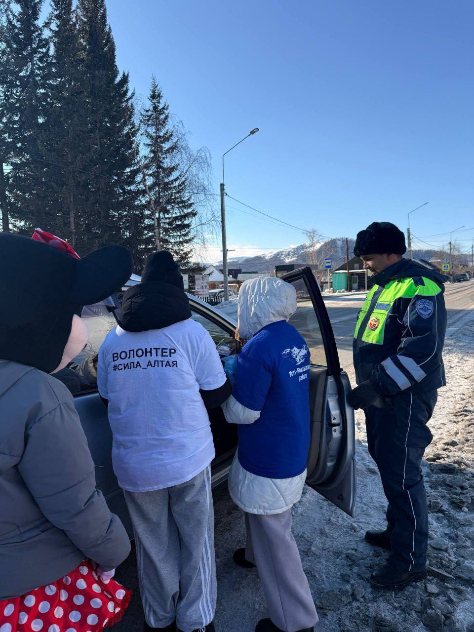 В Усть-Коксе автоинспекторы и волонтеры поздравили водителей с Днем защитника Отечества