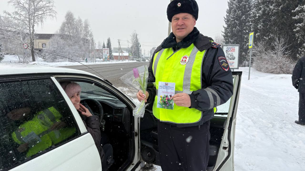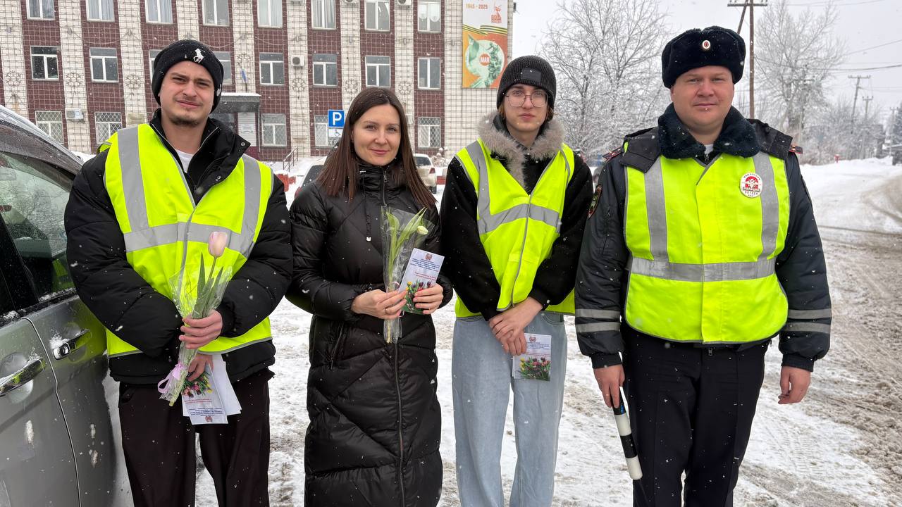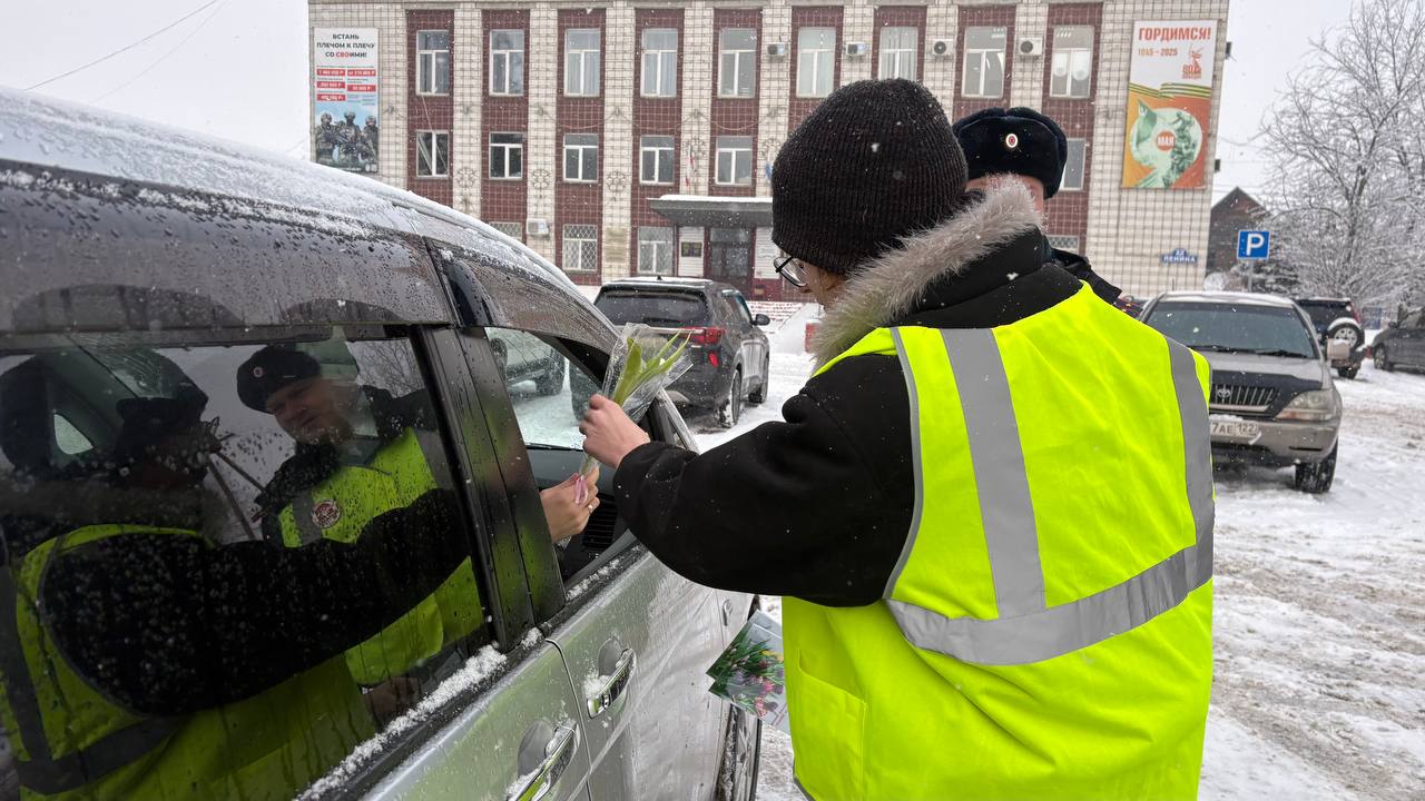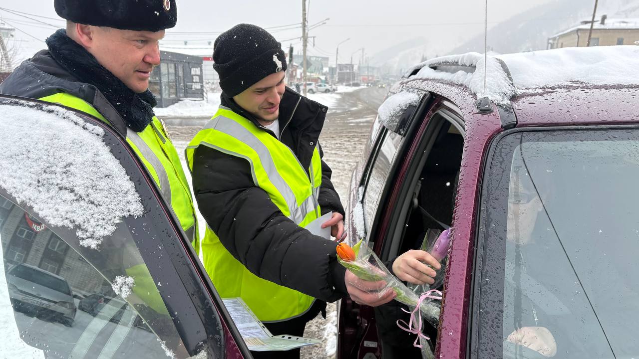 В преддверии Международного женского дня в селе Майма прошла традиционная праздничная акция. Сотрудники Госавтоинспекции совместно со студентами Горно-Алтайского политехнического колледжа имени М.З. Гнездилова вышли на дороги, чтобы поздравить прекрасную половину водителей с наступающим праздником.