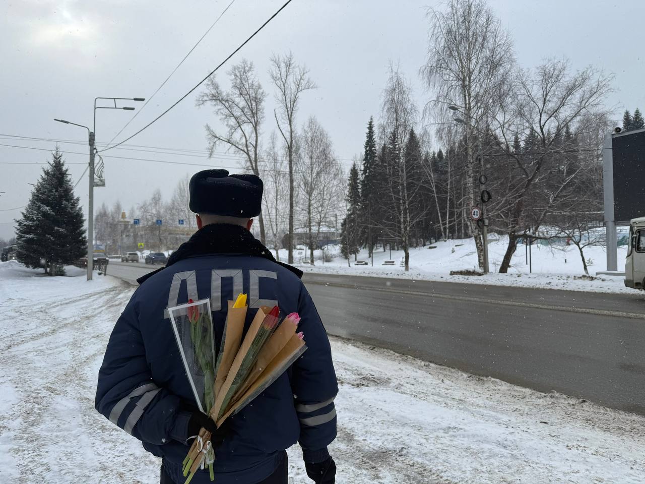 В преддверии Международного женского дня сотрудники Госавтоинспекции совместно с представителями государственного собрания Эл-Курултай провели праздничную акцию « Цветы для автоледи».