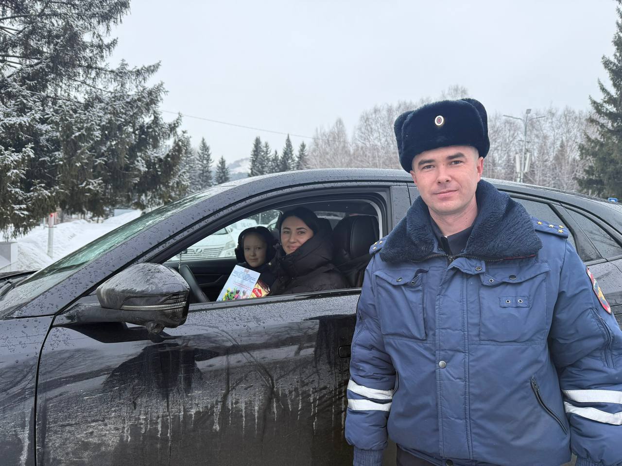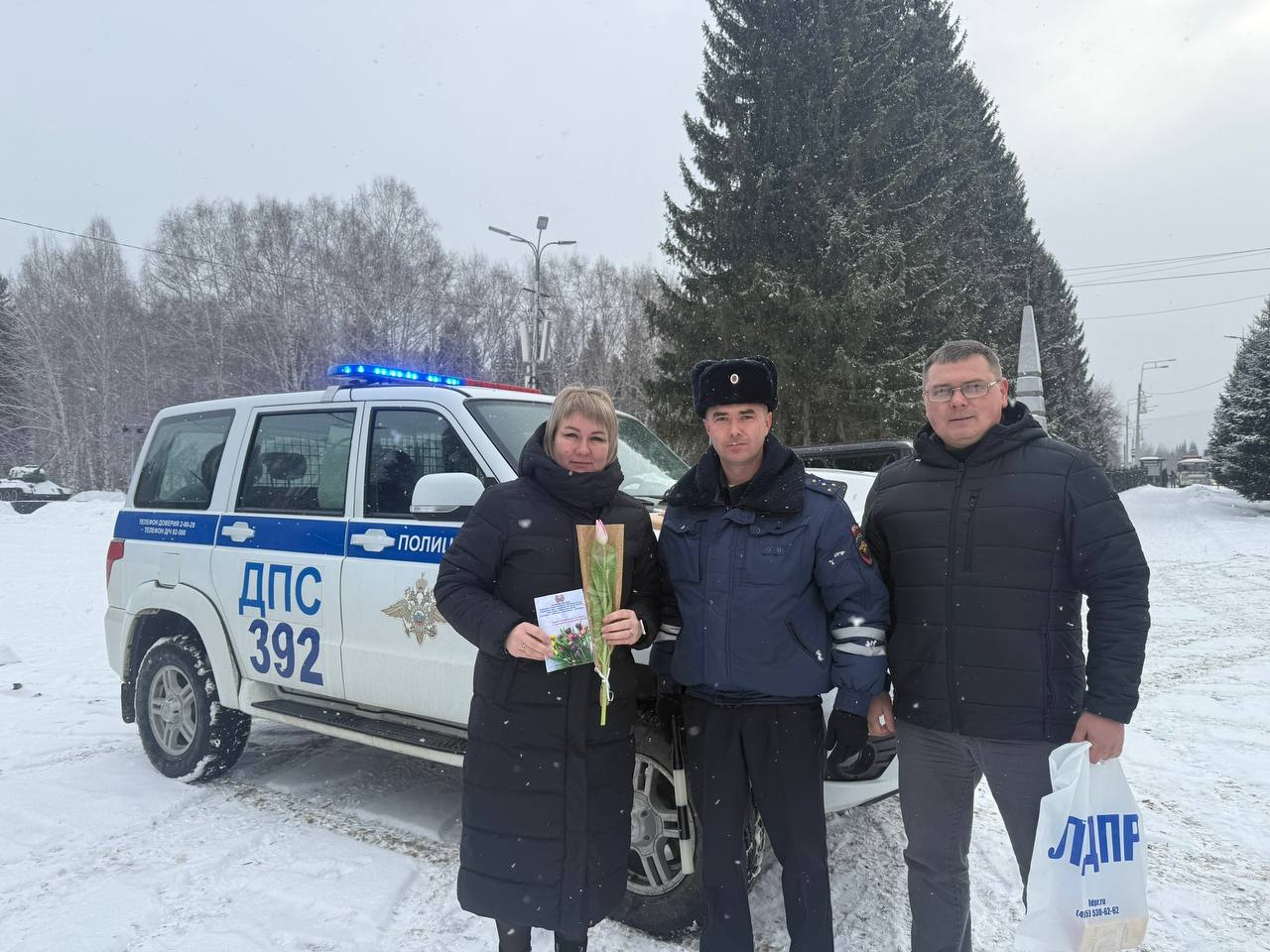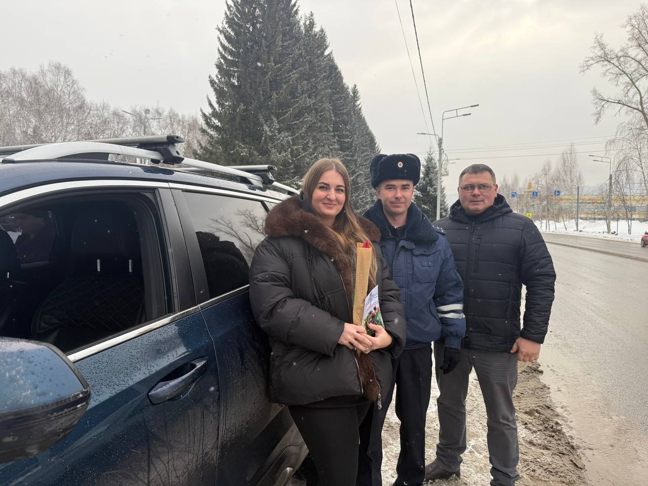 г. Горно-Алтайска, капитан полиции Константин Дымов , поздравляя автоледи, вручил приятные подарки: