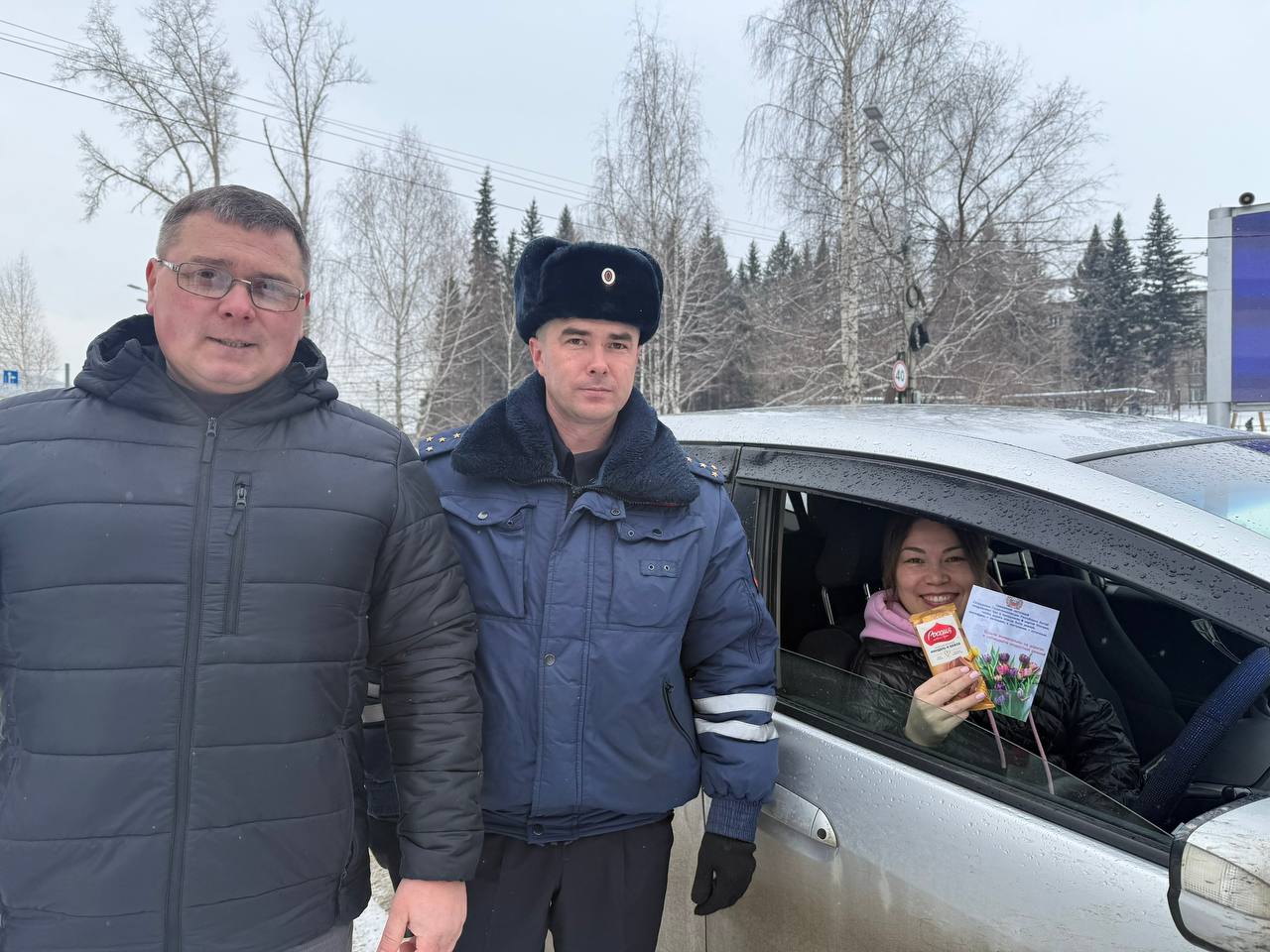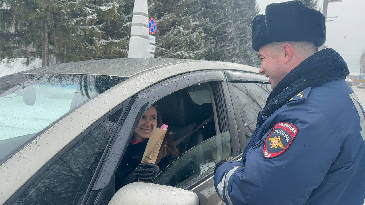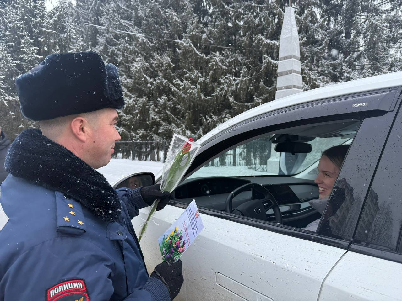 На дорогах царила теплая праздничная атмосфера. Автоинспекторы поздравляли женщин-водителей и напоминали о соблюдении правил дорожного движения.
