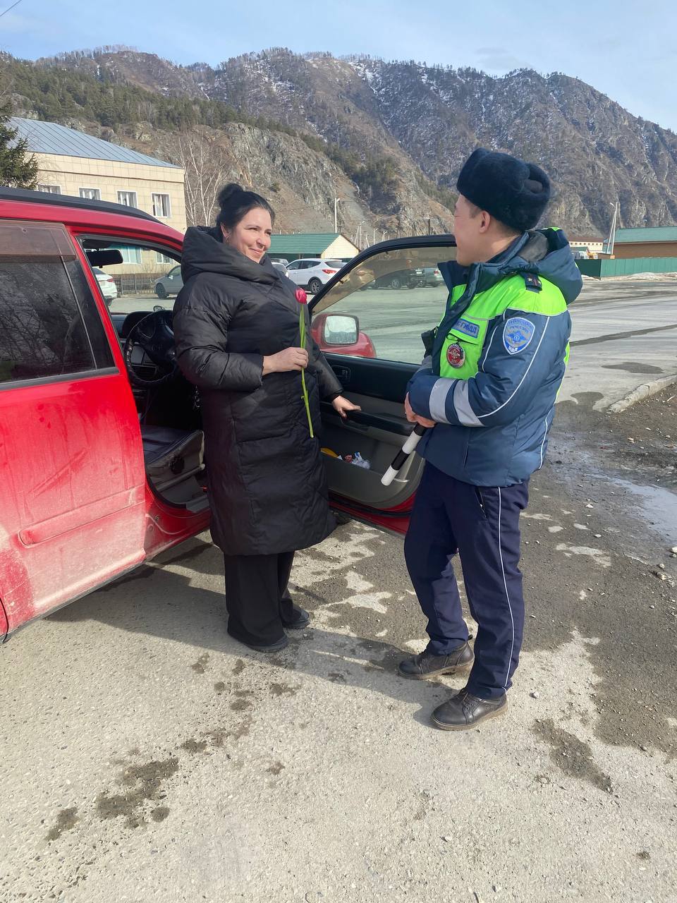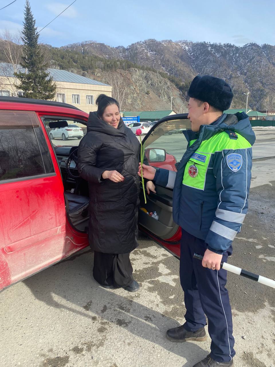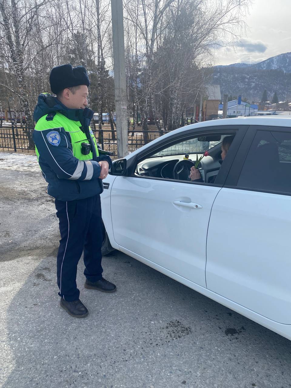 В канун 8 Марта инспекторы останавливали машины, но вместо привычной проверки документов дарили прекрасным дамам весенние тюльпаны и искренние улыбки.
