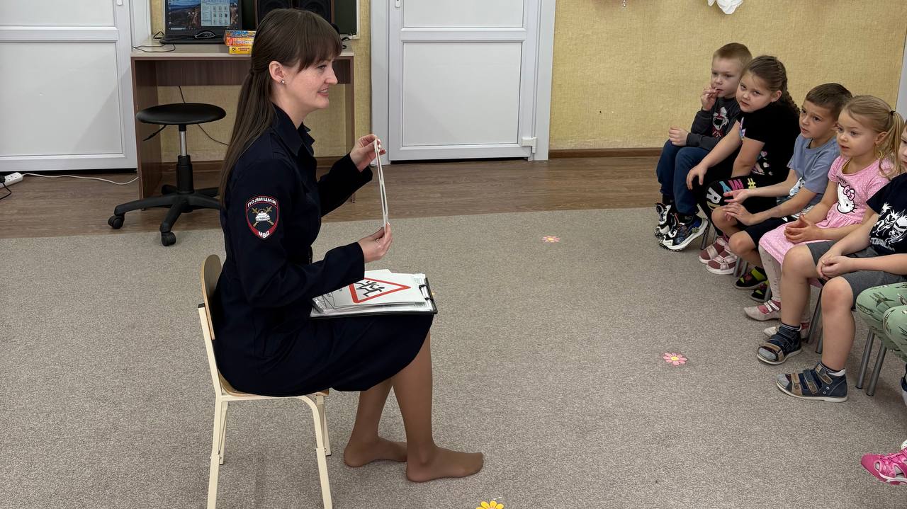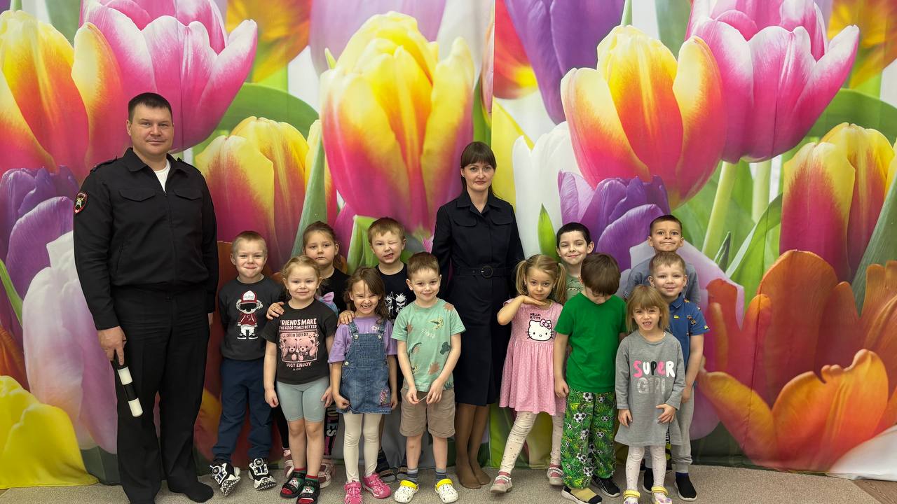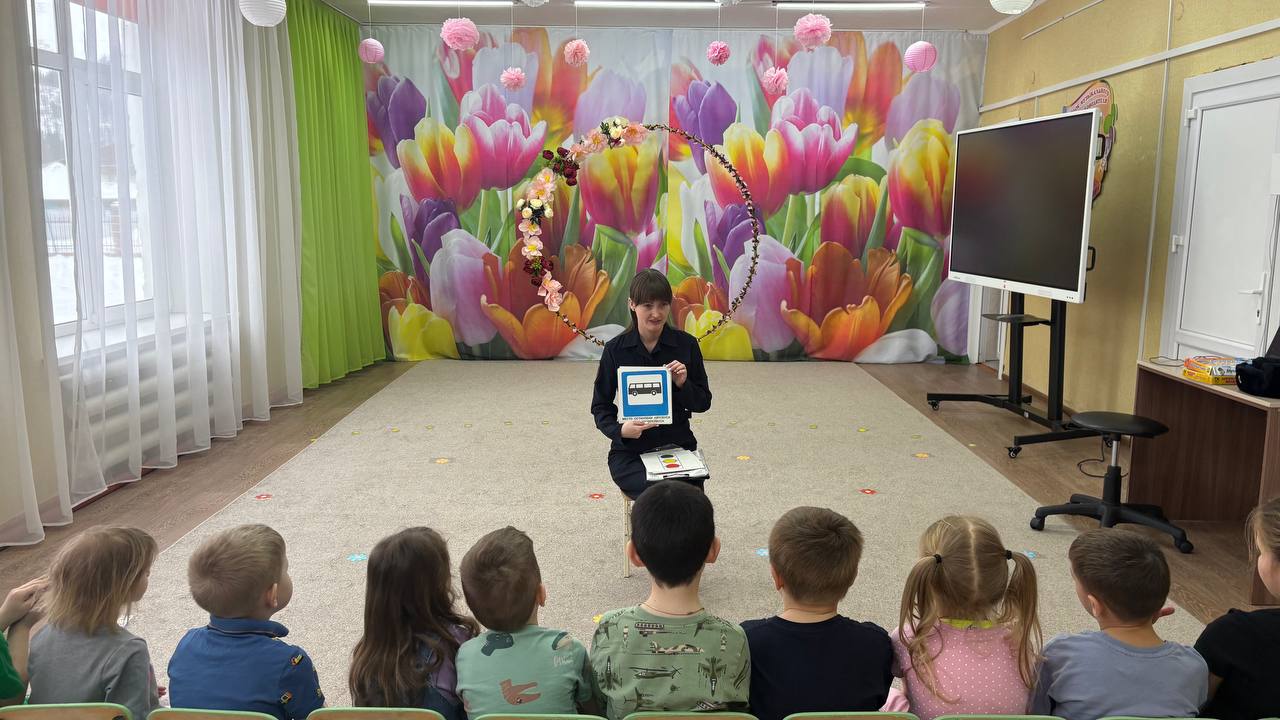 В гостях у «Белочки»: сотрудники Госавтоинспекции рассказали малышам о жестах регулировщика