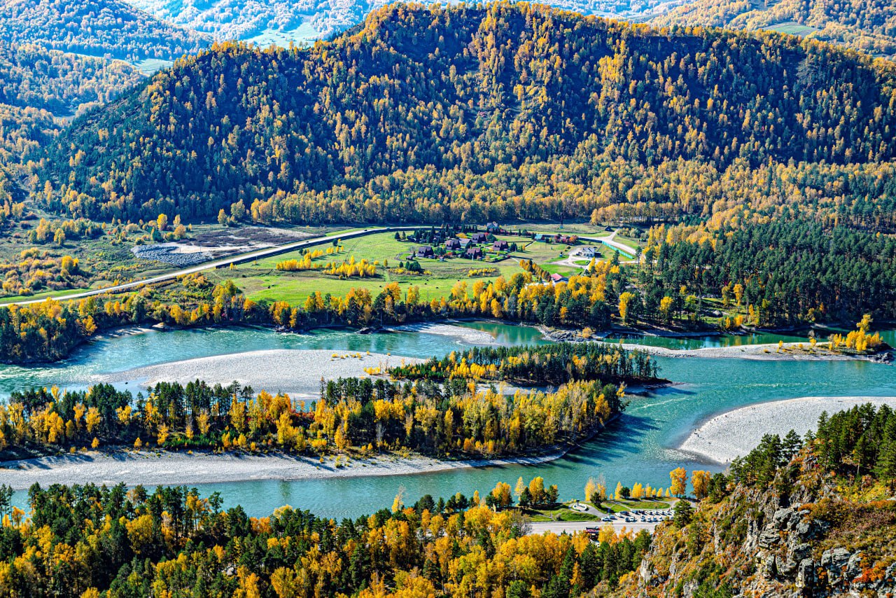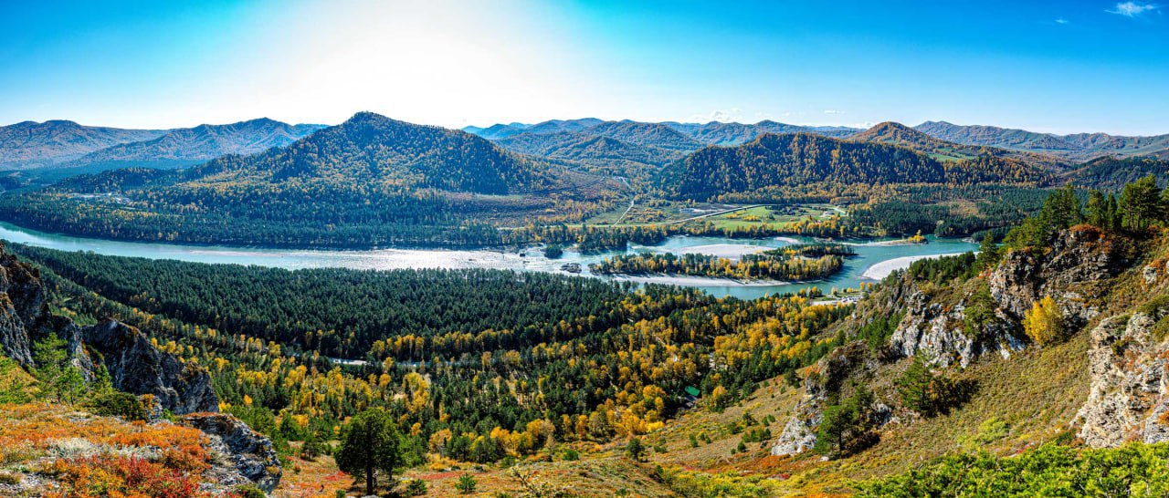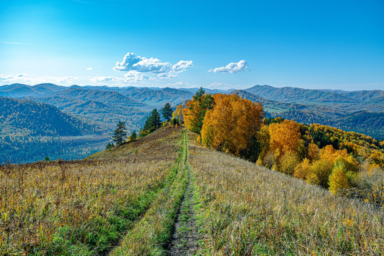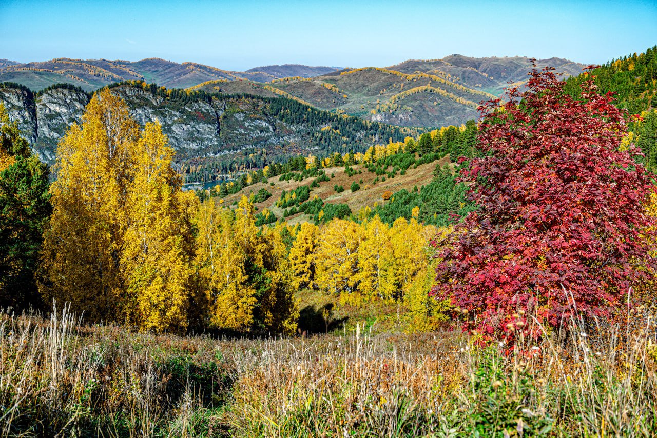 Гора Черепан рядом с Манжероком. Осенью там необычно яркие цвета деревьев, переливающихся на солнце, с самой вершины горы открываются необычные панорамные виды, и всё село Манжерок как на ладони.