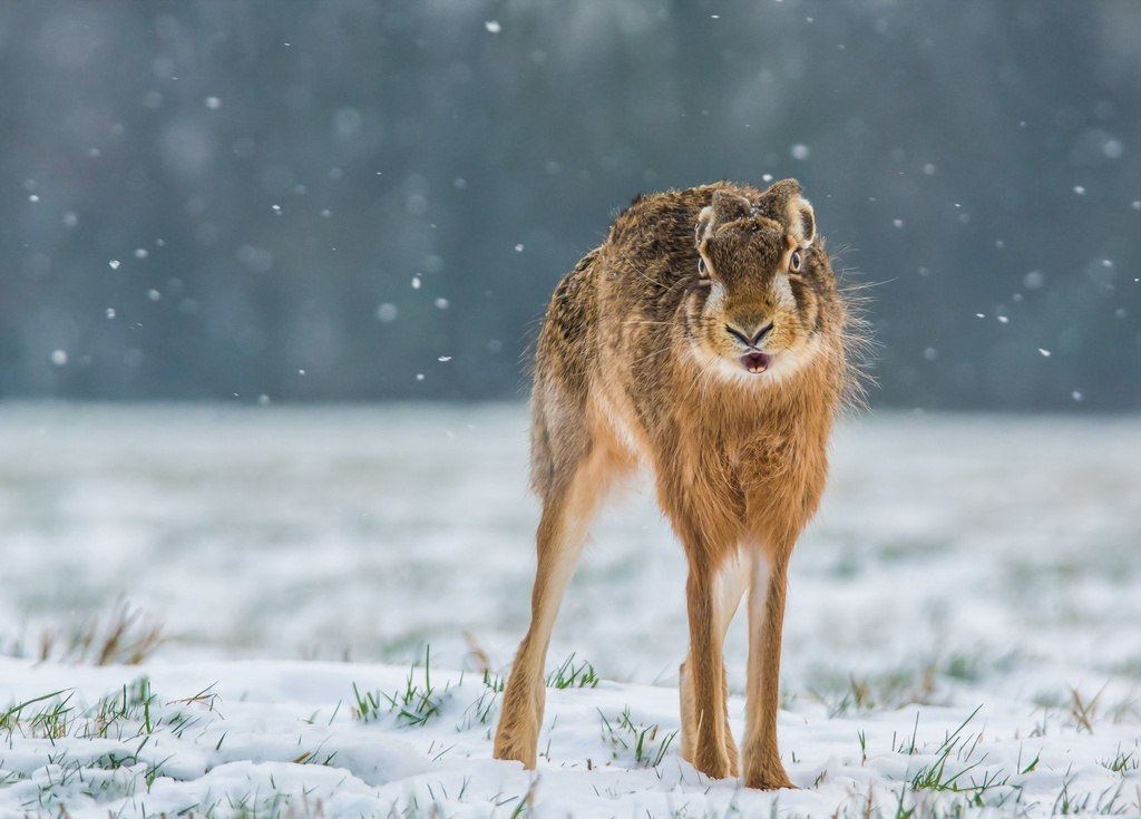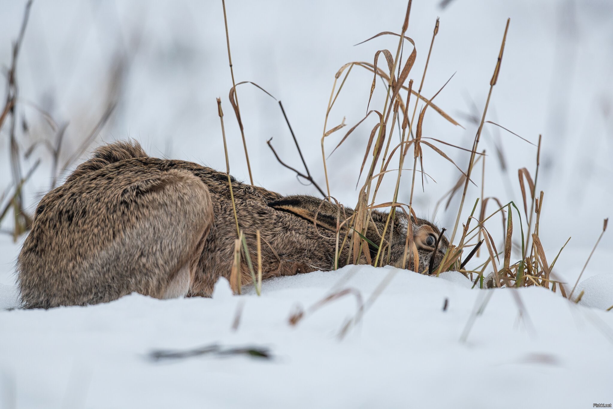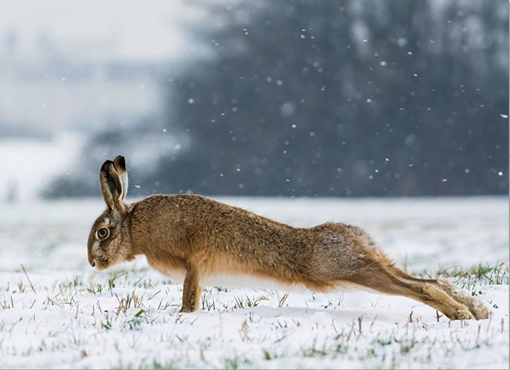 Это заяц-русак в оборонительно-наблюдательной позе и готов убежать в один миг.