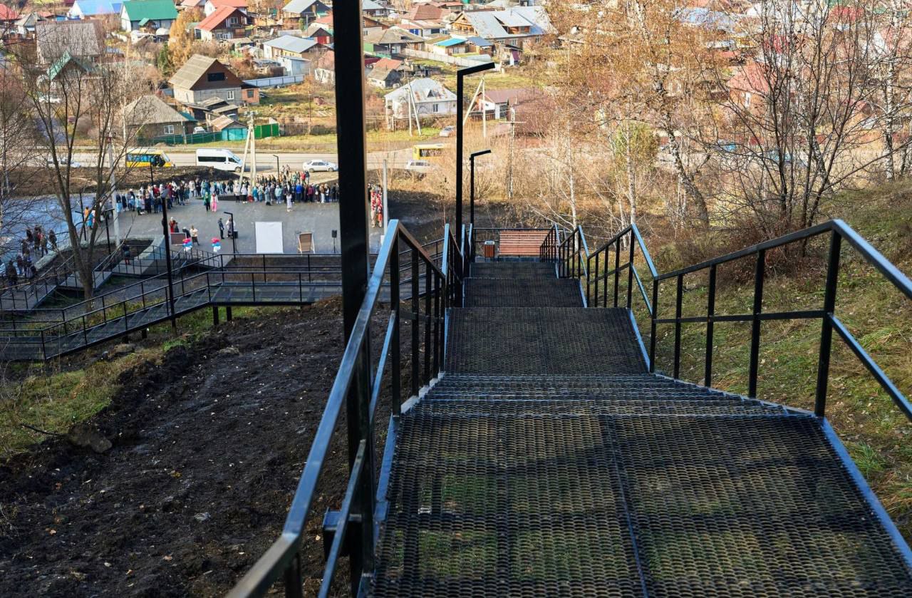 Отсюда открывается панорамный вид на берега Катуни, гору Бабырган и Майму. На вершину горы высотой в 250 метров ведут 263 ступени. После каждого из 20 лестничных маршей расположено комфортное пространство, где можно отдохнуть во время подъёма или спуска.