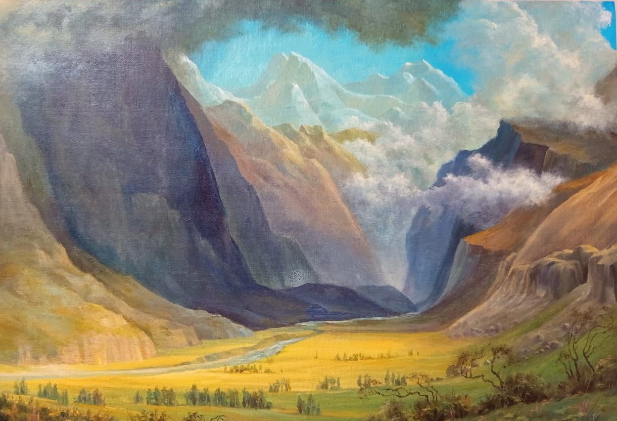 Олег профессиональный вертолетчик, бортмеханик Ми 8. Более тридцати лет он имеет счастливую возможность любоваться Алтаем с высоты птичтего полёта. Это, безусловно, наложило свой отпечаток на его творчество.
