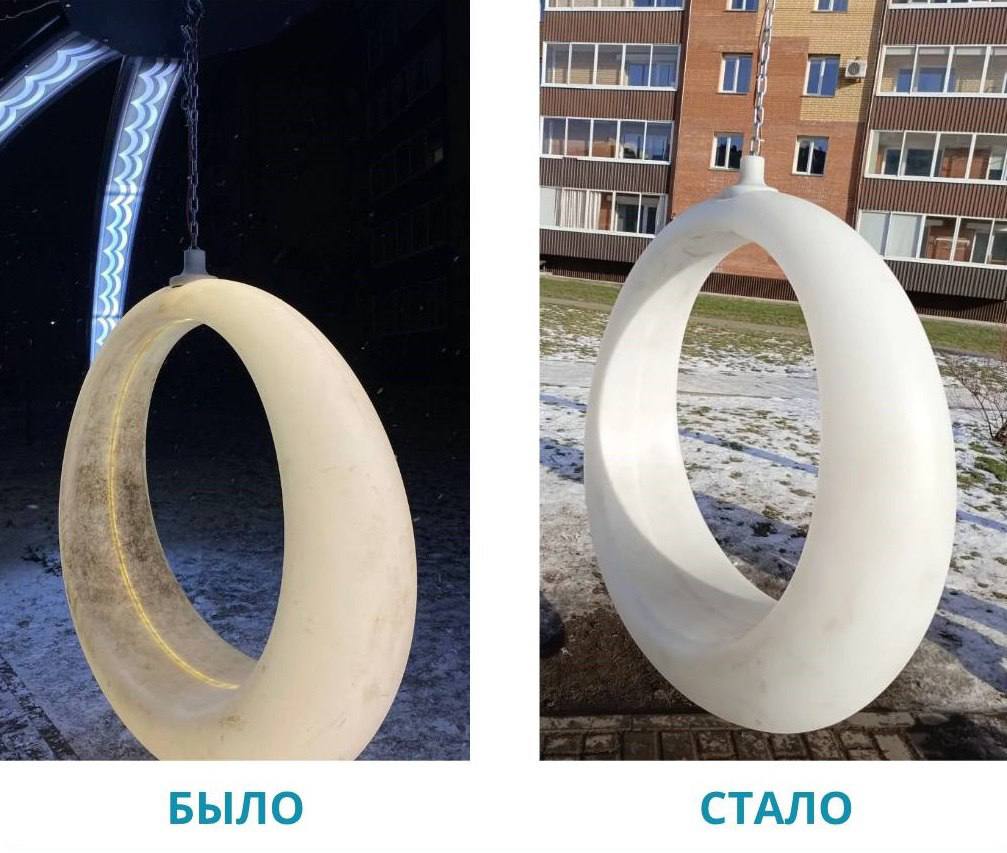 Светящиеся качели на набережной в районе Мебельной в Горно-Алтайске привели в порядок работники Центра бытового обслуживания населения и благоустройства города