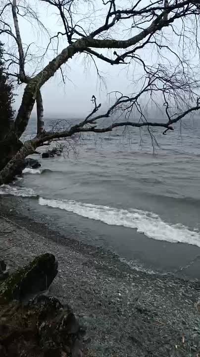 На Телецком озере разыгрался настоящий зимний шторм. С сильными порывами ветра и крутыми волнами, разбивающимися с шумом о берег.