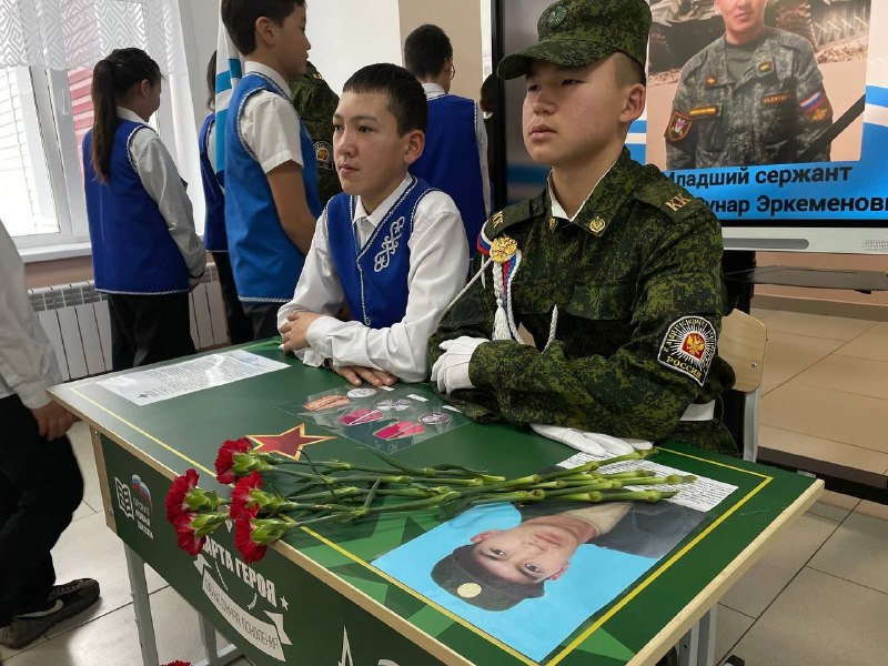 В Мендур-Сокконской средней школе Усть-Канского района состоялось открытие «Парты Героя», посвященной выпускнику школы Сунару Кадятину, героически погибшему при исполнении воинского долга в зоне проведения специальной военной операции.