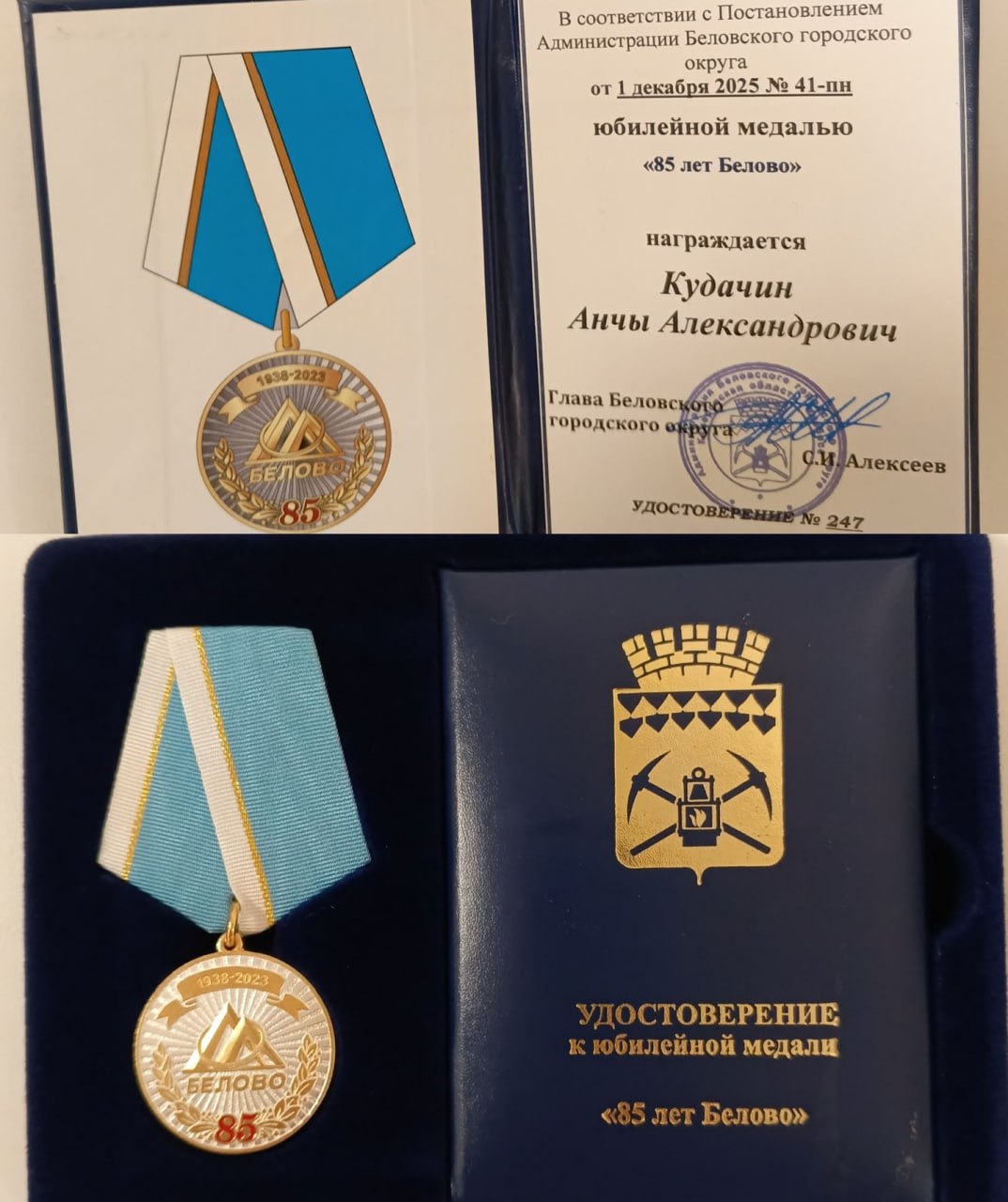 Этномузыкант Анчы Кудачин из села Яконур Усть-Канского района Республики Алтай на торжественном мероприятии награжден медалью «85 лет Белово». Медаль вручил лично мэр этого кузбасского города Сергей Алексеев.