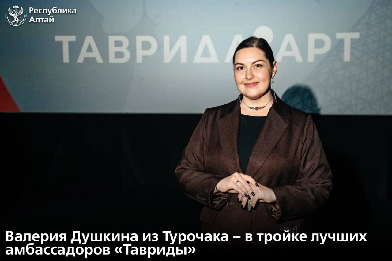 Директор Турочакского дома творчества и досуга Валерия Душкина заняла второе место в рейтинге лучших амбассадоров арт-кластера «Таврида» в 2025 году.