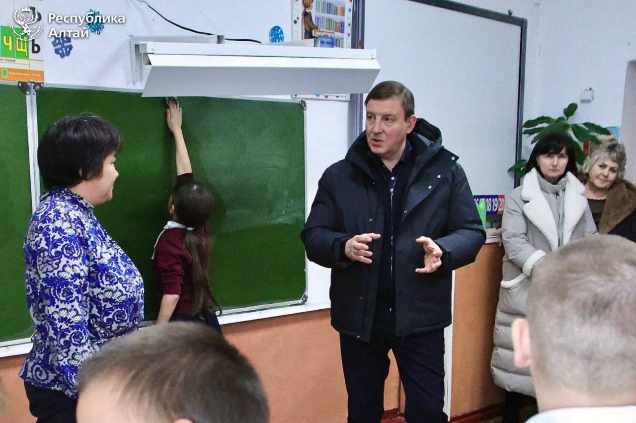 Глава Республики Алтай Андрей Турчак в ходе рабочей поездки осмотрел здание детского сада «Зоренька» и школы в селе Мыюта.