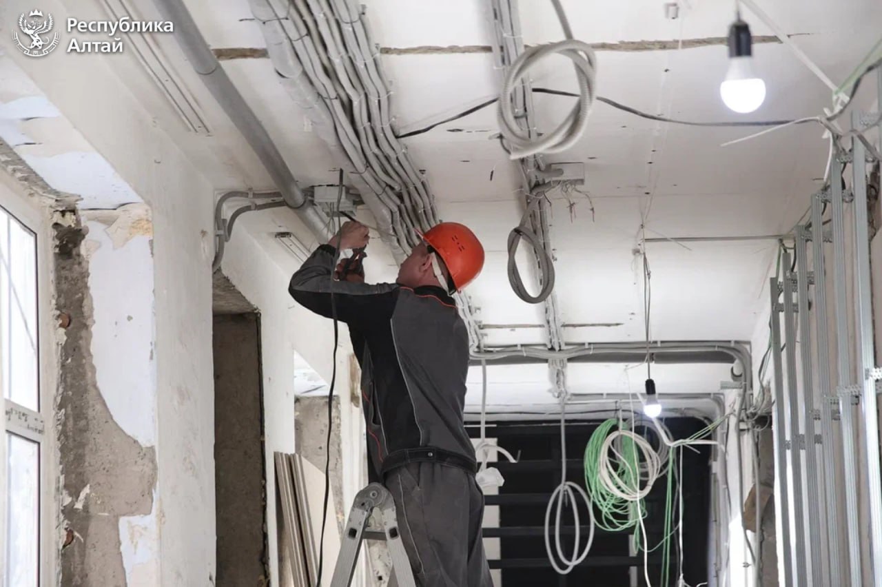Общая готовность – почти 70%. По словам Андрея Турчака, к началу нового учебного года капитальный ремонт завершится.