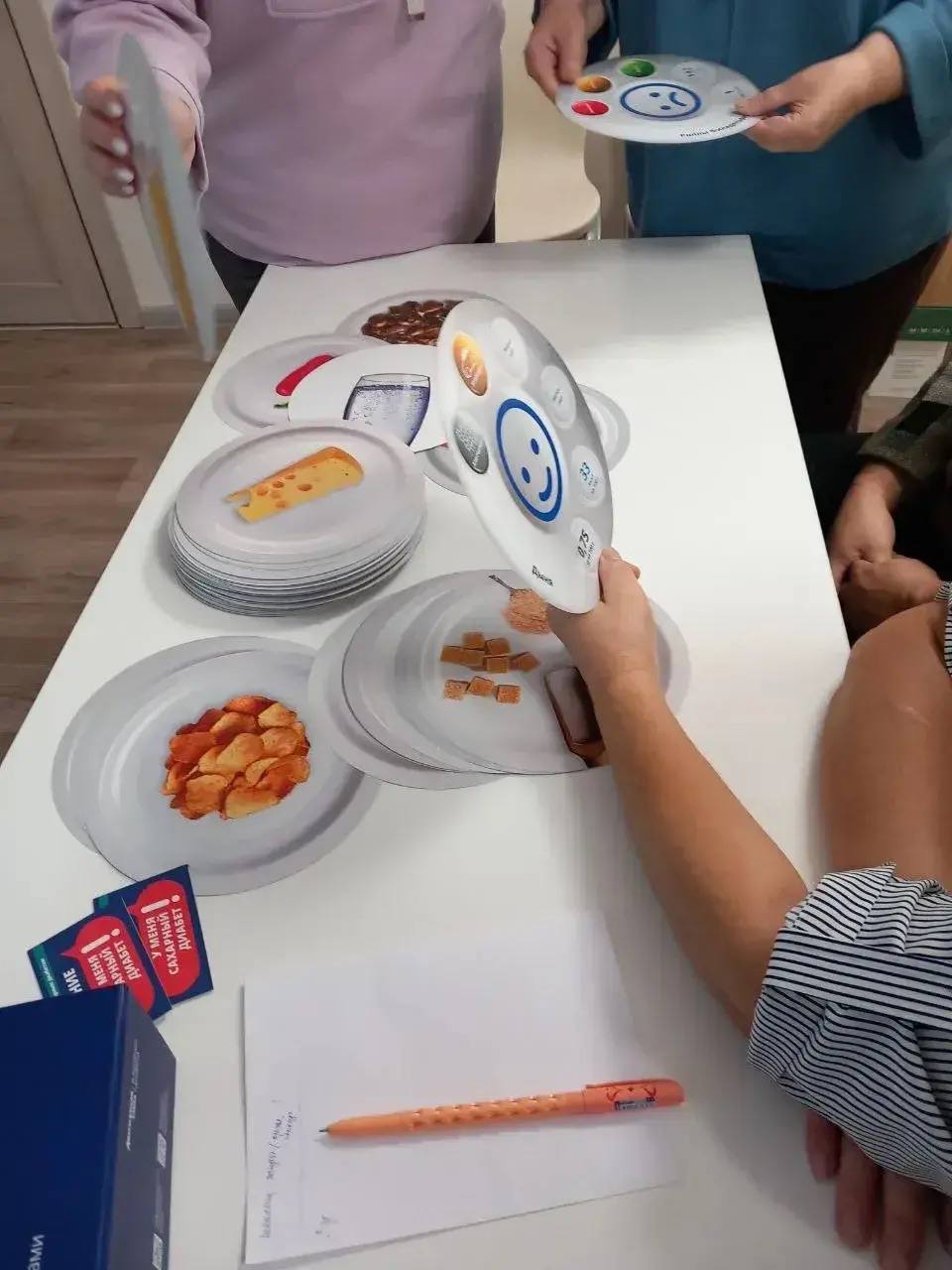 Очередное занятие Школы сахарного диабета проведено врачом-эндокринологом Насыновой А.А. и медицинской сестрой Корсун Е.П. имеющими дополнительную профессиональную подготовку по сахарному диабету. Пациентам рассказали о типах диабета, о светофоре питания, о подсчете углеводов по системе хлебных единиц. Особый интерес вызвали макеты тарелок с продуктами питания из которых пациенты самостоятельно собрали свой привычный «ужин», а затем перевернув тарелки увидели количество хлебных единиц содержащихся в том, или ином продукте. И соответственно смогли посчитать в своем «ужине» количество углеводов.