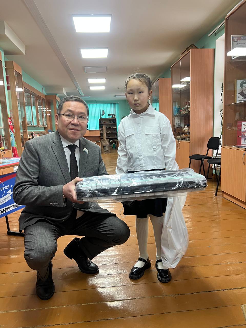Эжер Ялбаков во время рабочей поездки в Акташ привёз для семилетней Виталины синтезатор.