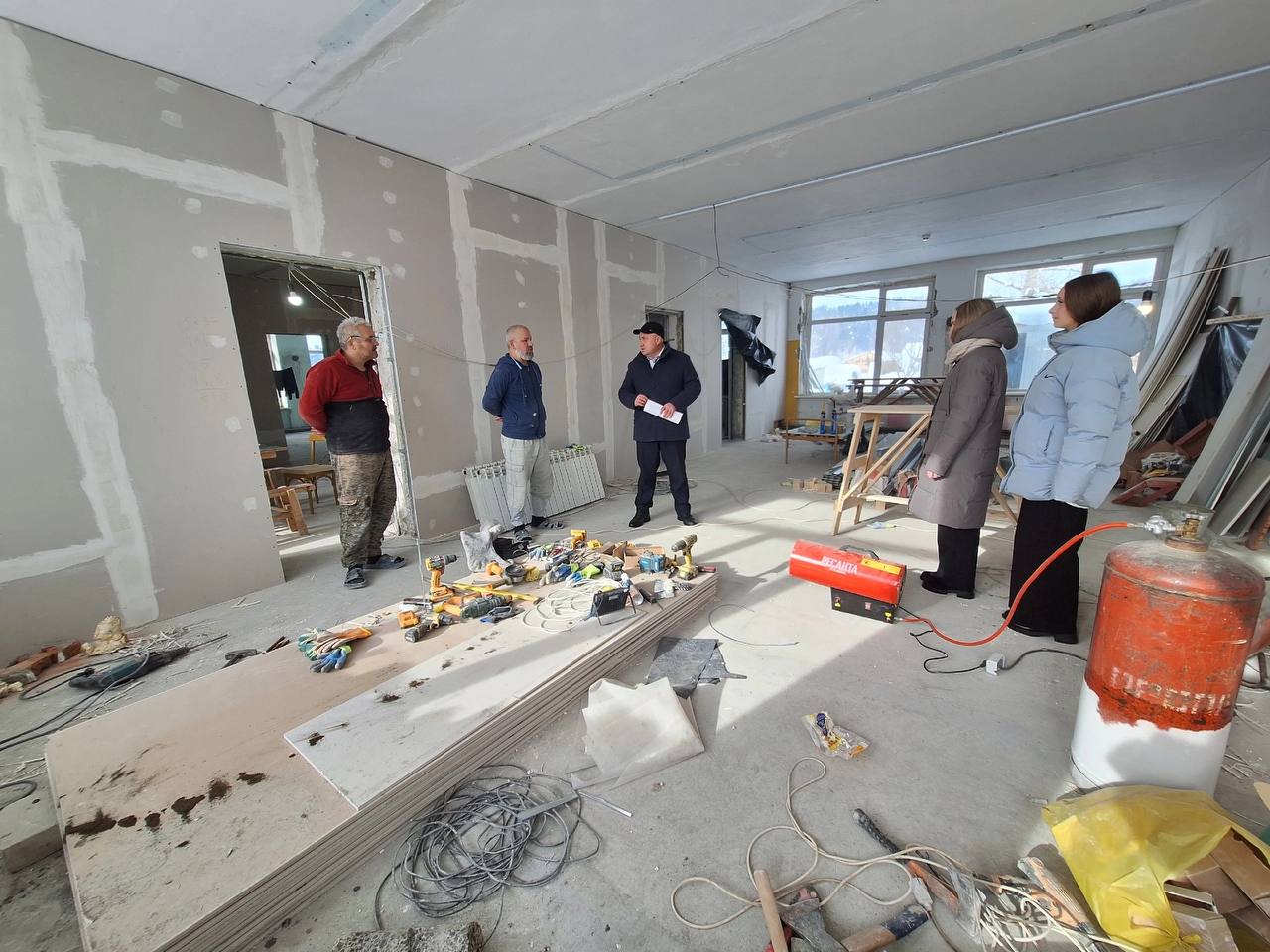На местах увидели ход капремонта детского сада в Ынырге и строительства нового в Каракокше. Русских подробно рассказал о практической реализации нацпроекта «Семья» и подготовительной работе команды администрации.