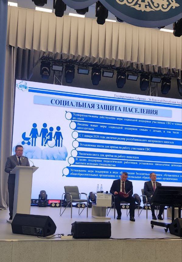 С основным докладом выступил спикер Парламента Республики Алтай Эжер Ялбаков, сообщив, что за прошедший период принято 147 законов.