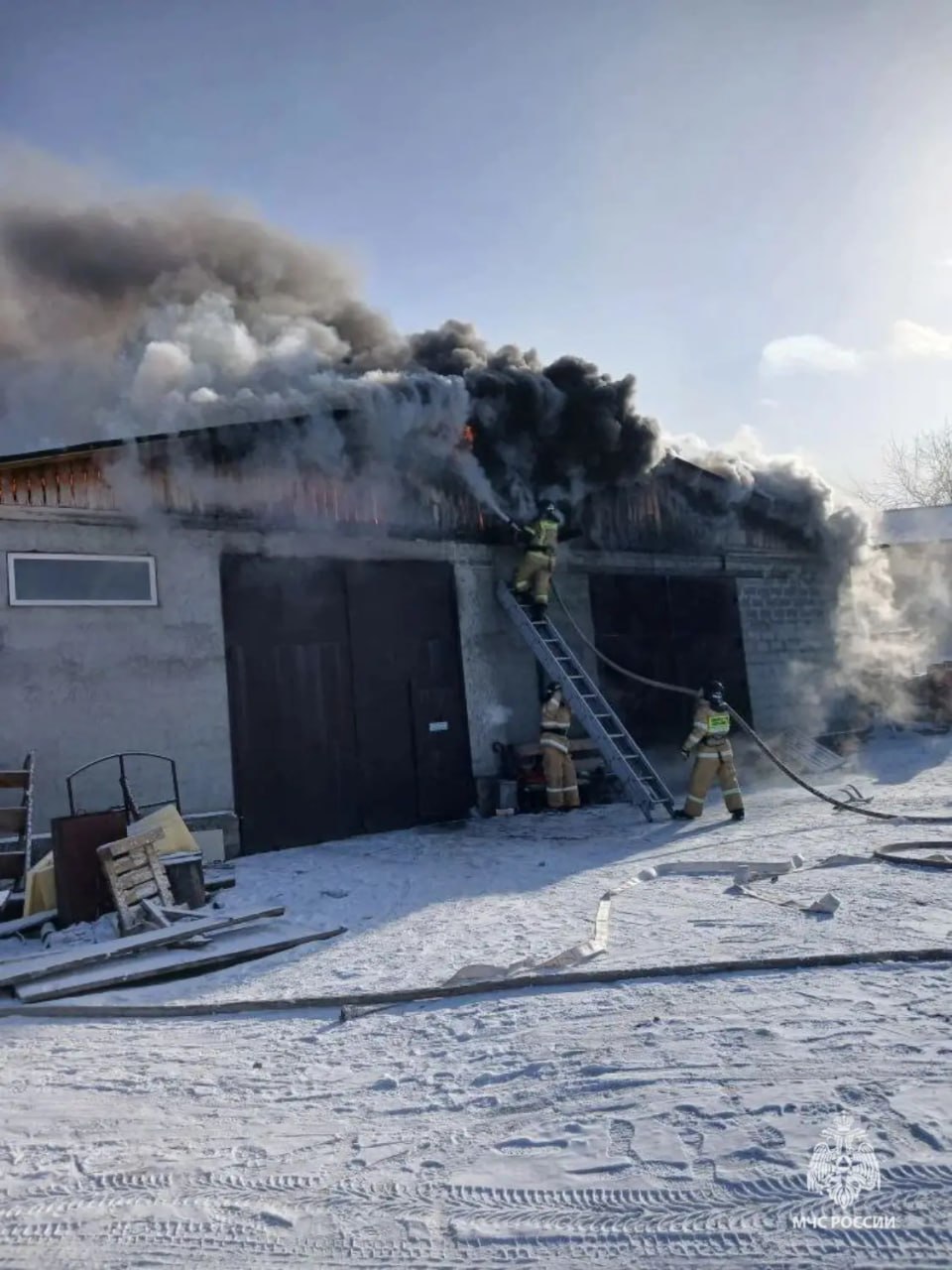 В Шебалино по улице Чуйской вчера загорелся гараж на площади 60 квадратных метров
