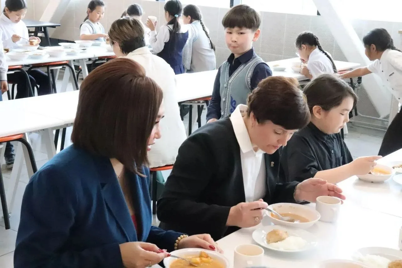 «Завтрак с мэром» прошёл в школе №7 им. Ю.Г. Сакашевой. Директор Арчынай Кундыева вместе с Ольгой Сафроновой проверили «кухонный быт», пообщались с поварами и учениками. Дети подтвердили: кормят вкусно, в столовой уютно. Гостья особенно отметила удавшийся суп.