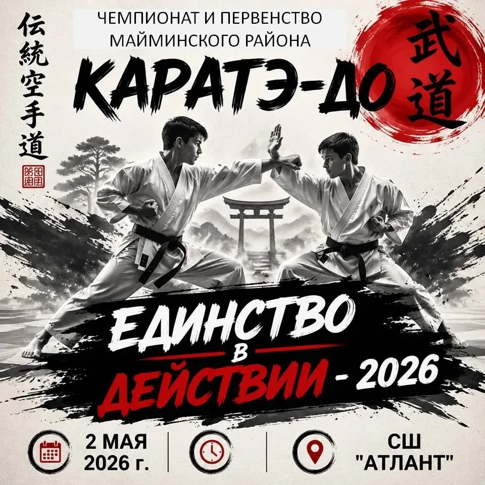 2 мая в СШ "Атлант" состоится чемпионат и первенство Майминского района по традиционному каратэ-до "Единство в действии-2026".Начало в 9:00. Вход свободный.