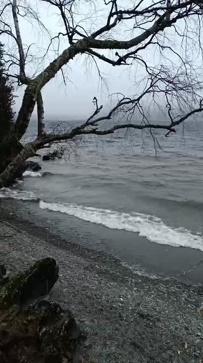 С сильными порывами ветра и крутыми волнами, разбивающимися с шумом о берег.Алтайский заповедник. Телецкое озеро. Берег ЯйлюВидео - Евгений Веселовский.