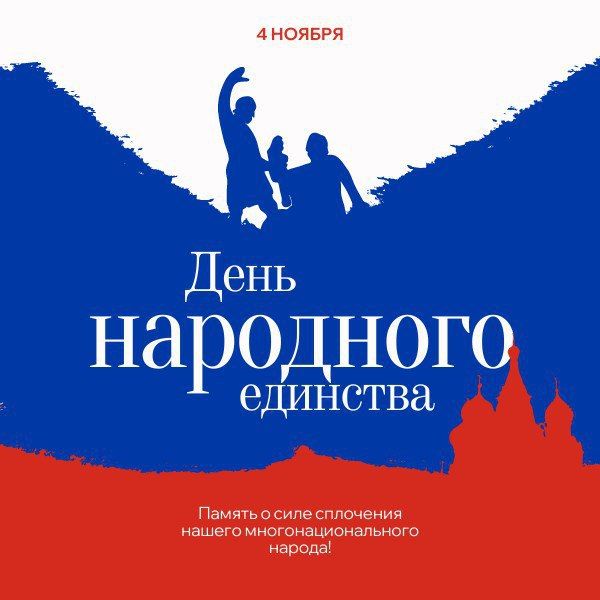 Поздравляем вас с Днём народного единства!Этот день отмечается в честь событий 1612 года, когда народное ополчение под предводительством Кузьмы Минина и Дмитрия Пожарского освободило Москву от польских интервентов. Это событие стало символом...