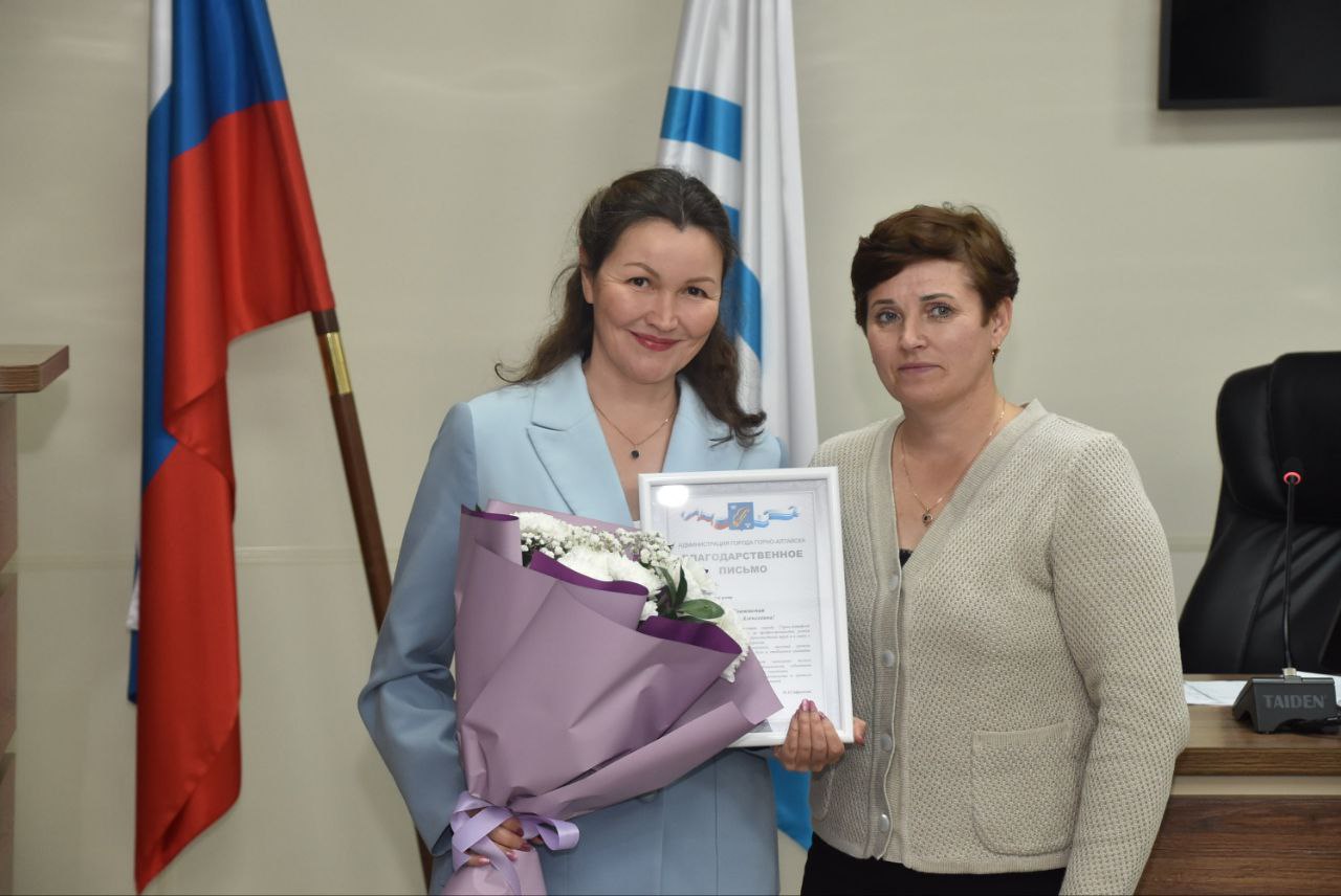 Благодарственное письмо Администрации города вручено Ирине Михалевой.