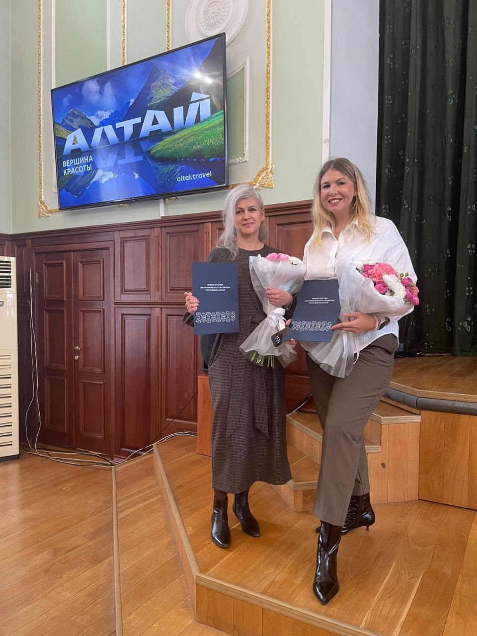 Благодарственными письмами Министерства экономического развития Республики Алтай отмечены Анастасия Апасенко (за реализацию проекта «Горно-Алтайск: 200 лет в обед») и Сания Шкарбань (за реализацию проекта «Горно-Алтайск. К 200-летию со дня основания»).