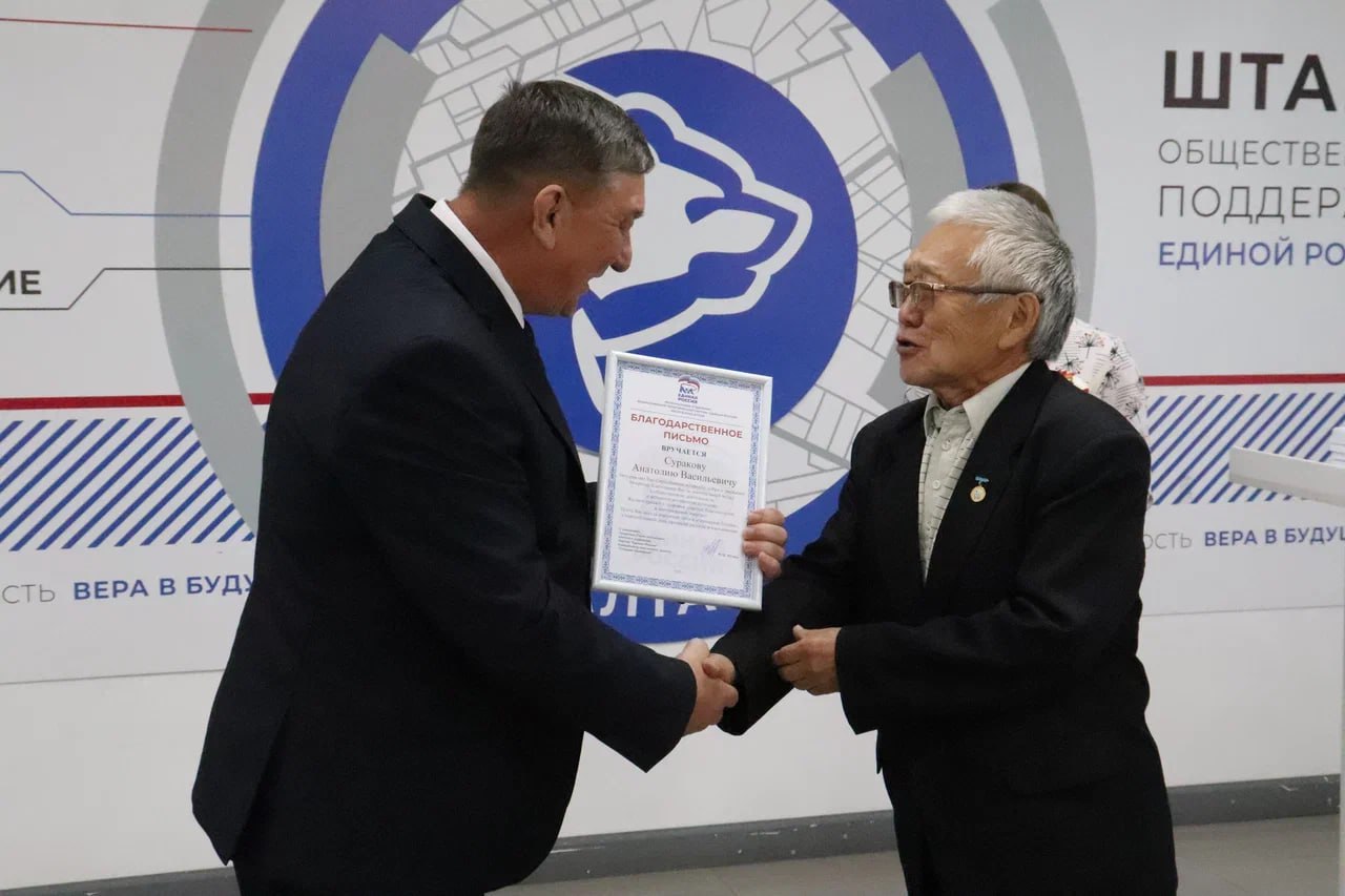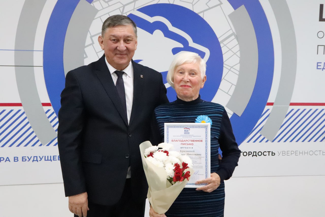 В знак уважения и благодарности активистам были вручены благодарности и цветочные композиции. Юрий Нечаев также вручил члену Президиума Совета ветеранов Горно-Алтайска Галине Сояпиной благодарственное письмо от имени Секретаря реготделения Партии «Единая Россия» Республики Алтай Эжера Ялбакова.
