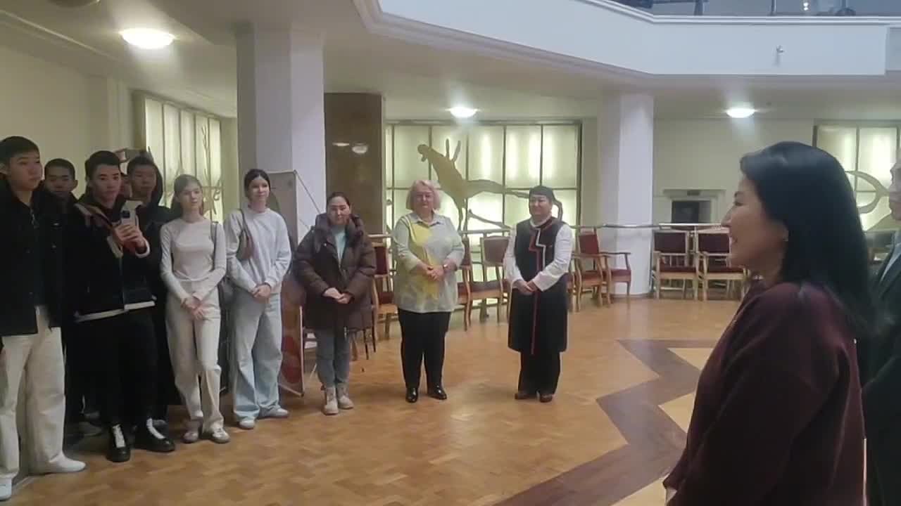 Их тепло встретили коллеги и друзья - коллектив Государственного Национального театра танца и песни "Алтам", подарив приветственный танец "Уткуул".