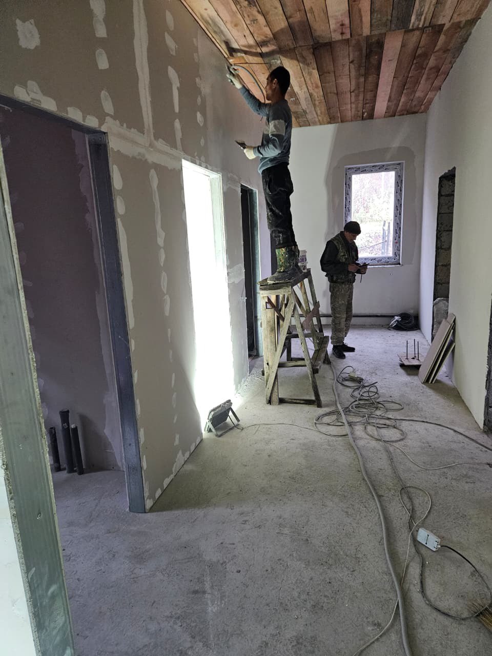 Здание уже возведено, завершены работы по установке окон, дверей. На сегодня проводится монтаж отопления, после чего подрядчик приступит к внутренней и внешней отделке.