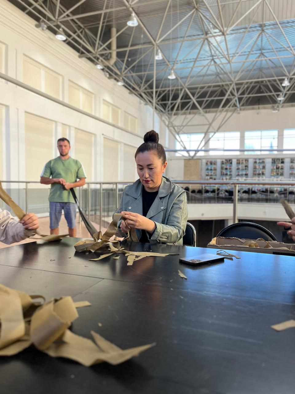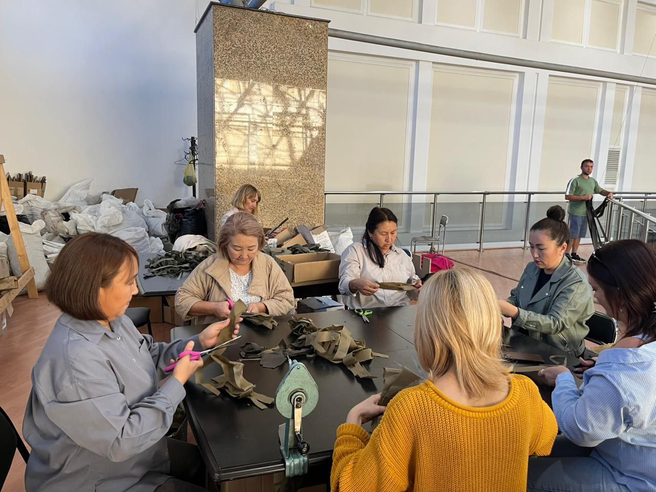 В свободное время сотрудники аппарата Госсобрания – Эл Курултай продолжают по очереди плести маскировочные сети для наших бойцов на передовой.