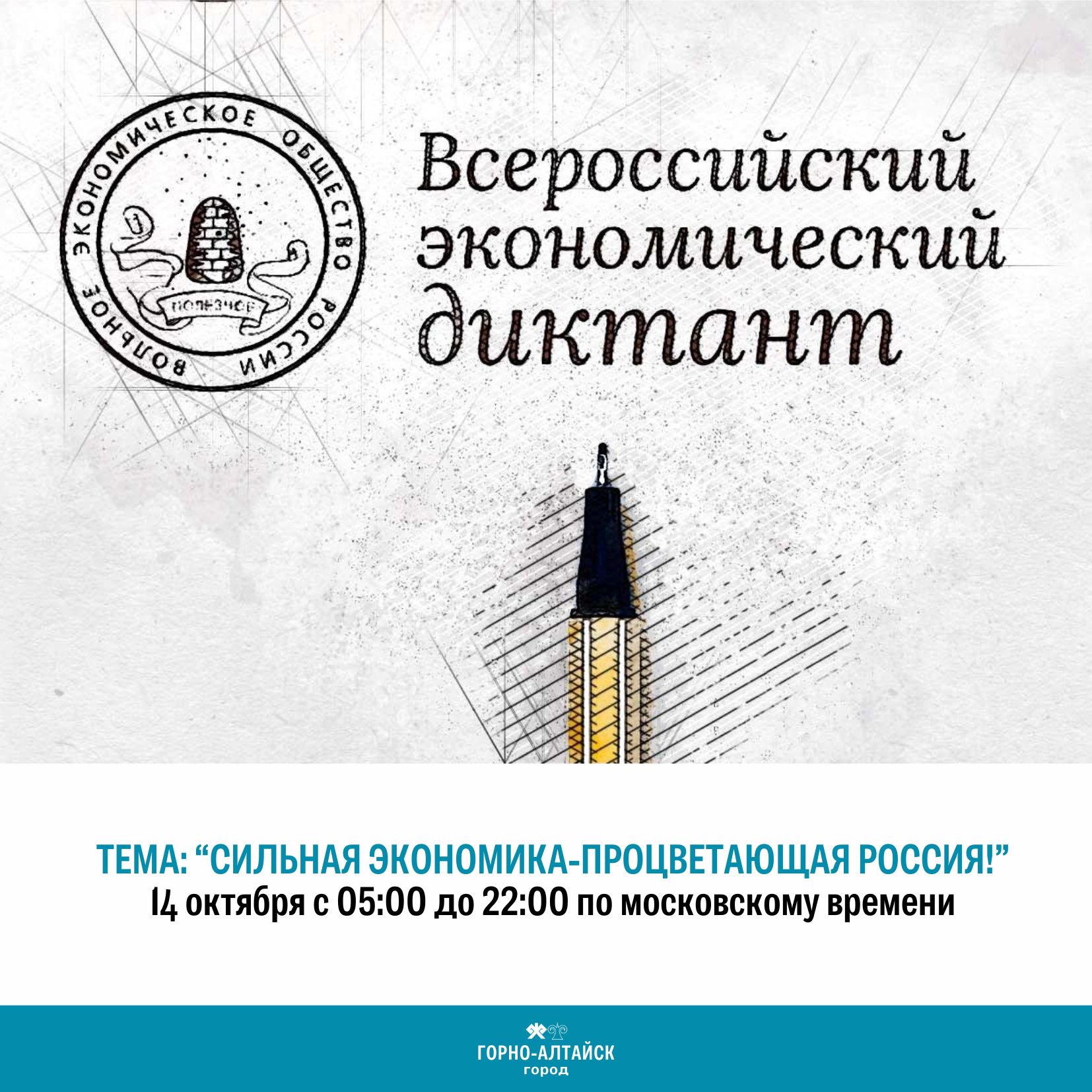 14 октября вся страна сможет написать Всероссийский экономический диктант! Тема этого года: «Сильная экономика – процветающая Россия!».