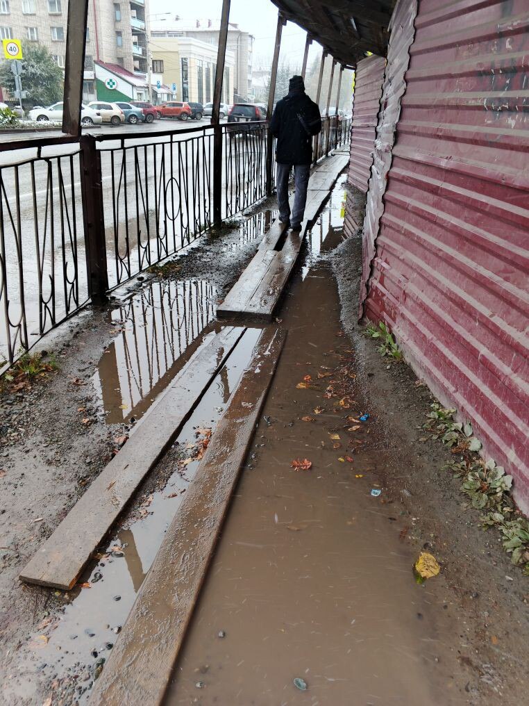 Жители Горно-Алтайска массово требуют привести в порядок тротуар в районе автовокзала, где за металлическим забором много лет никак не завершится возведение торгового центра на месте бывшего хлебозавода. Горадминистрация разъясняет: