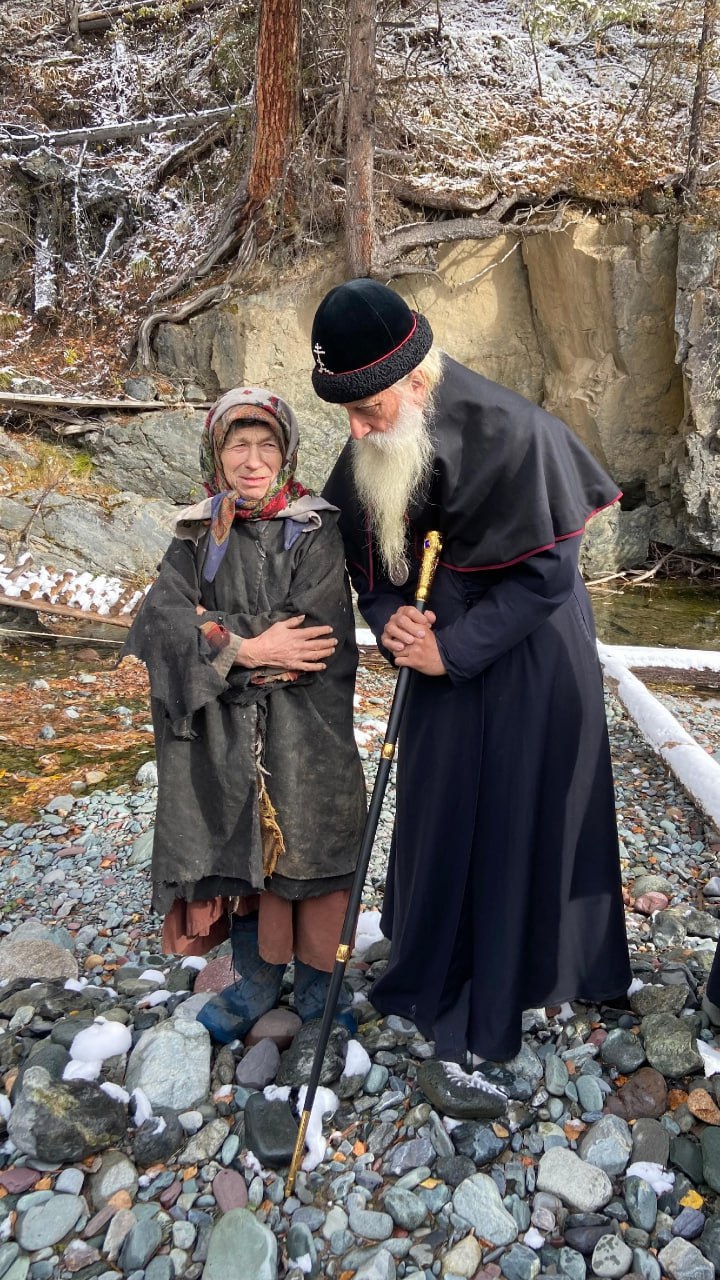 Накануне митрополит навестил отшельницу Агафью Карповну Лыкову, проживающую в глухой сибирской тайге на территории Хакассии.